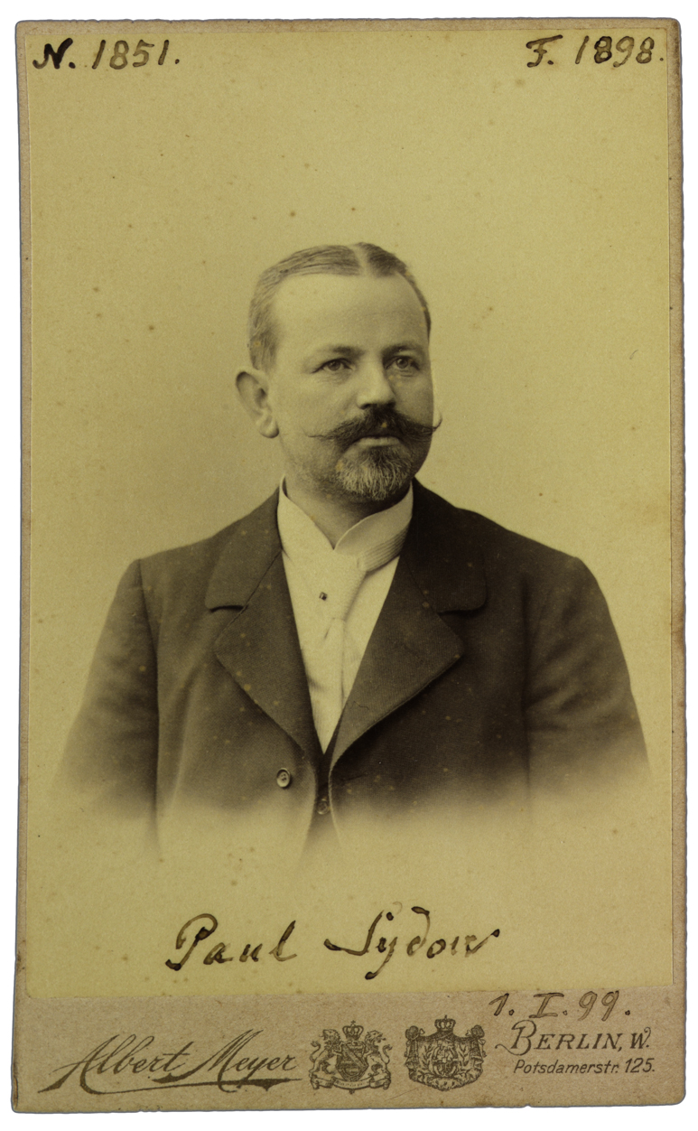 Titolo ed estremi cronologici riportati manoscritti sul recto, dove compare anche la data: 1.I.99. Nota manoscritta sul verso: Paul Sydow.