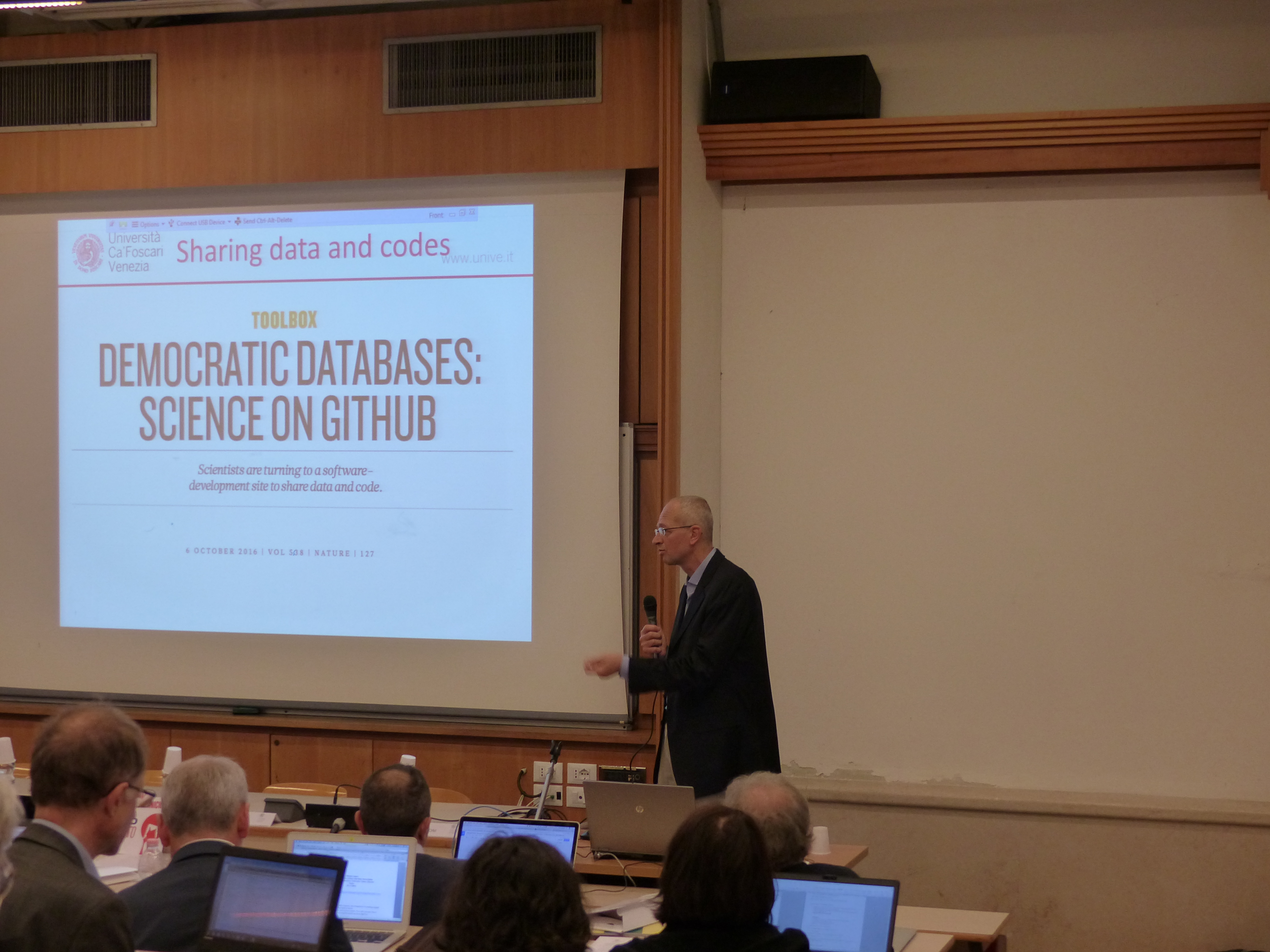 Achille Giacometti, professore associato e prorettore alla ricerca all'Università Ca' Foscari, durante la presentazione del suo intervento: “Research Scientist point of view on Open Science challenges”