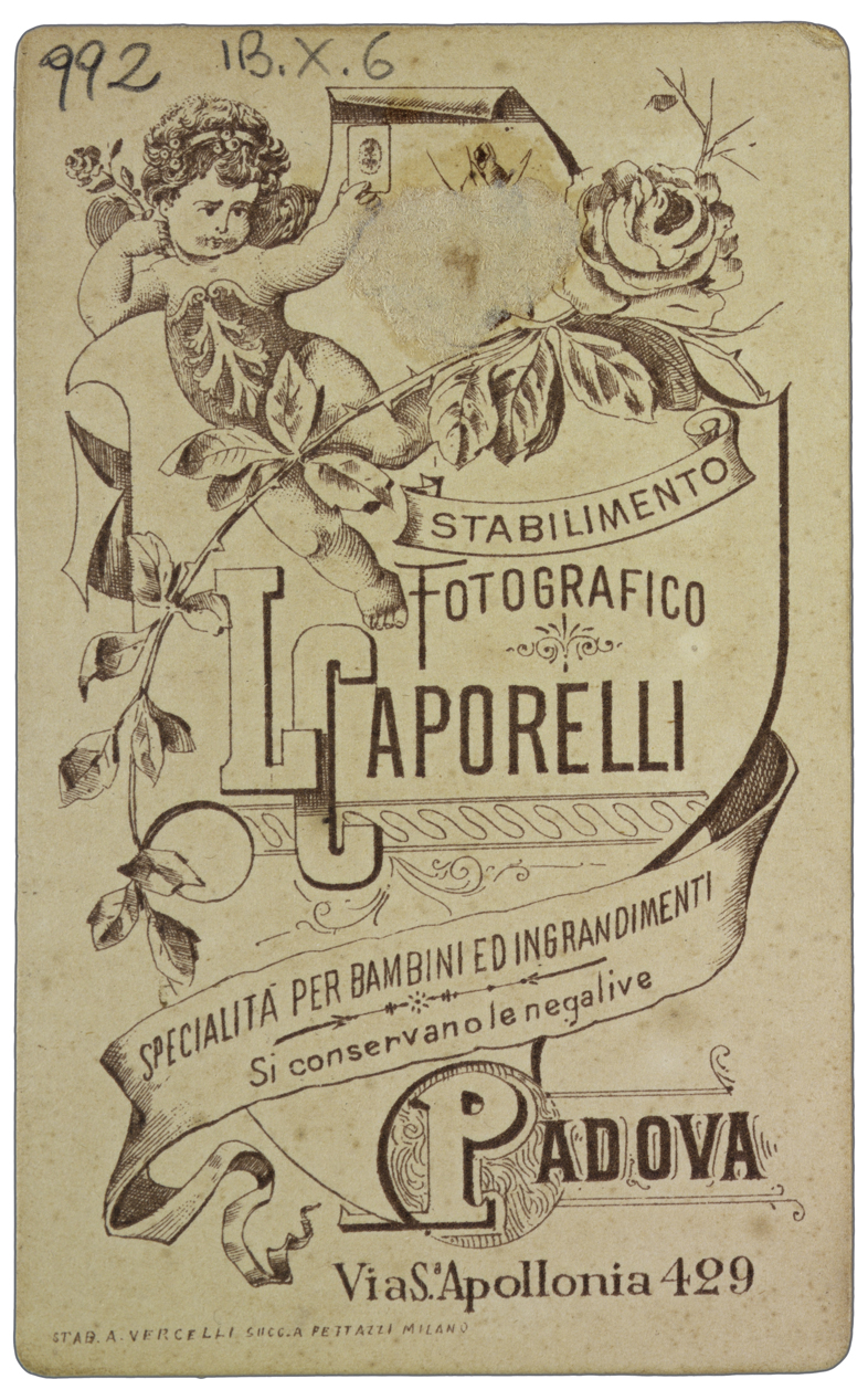 Titolo manoscritto sul recto, dove, oltre agli estremi cronologici, compare la data della foto (1899) e la nota: da inc. di Rosaspina alla Braidense.