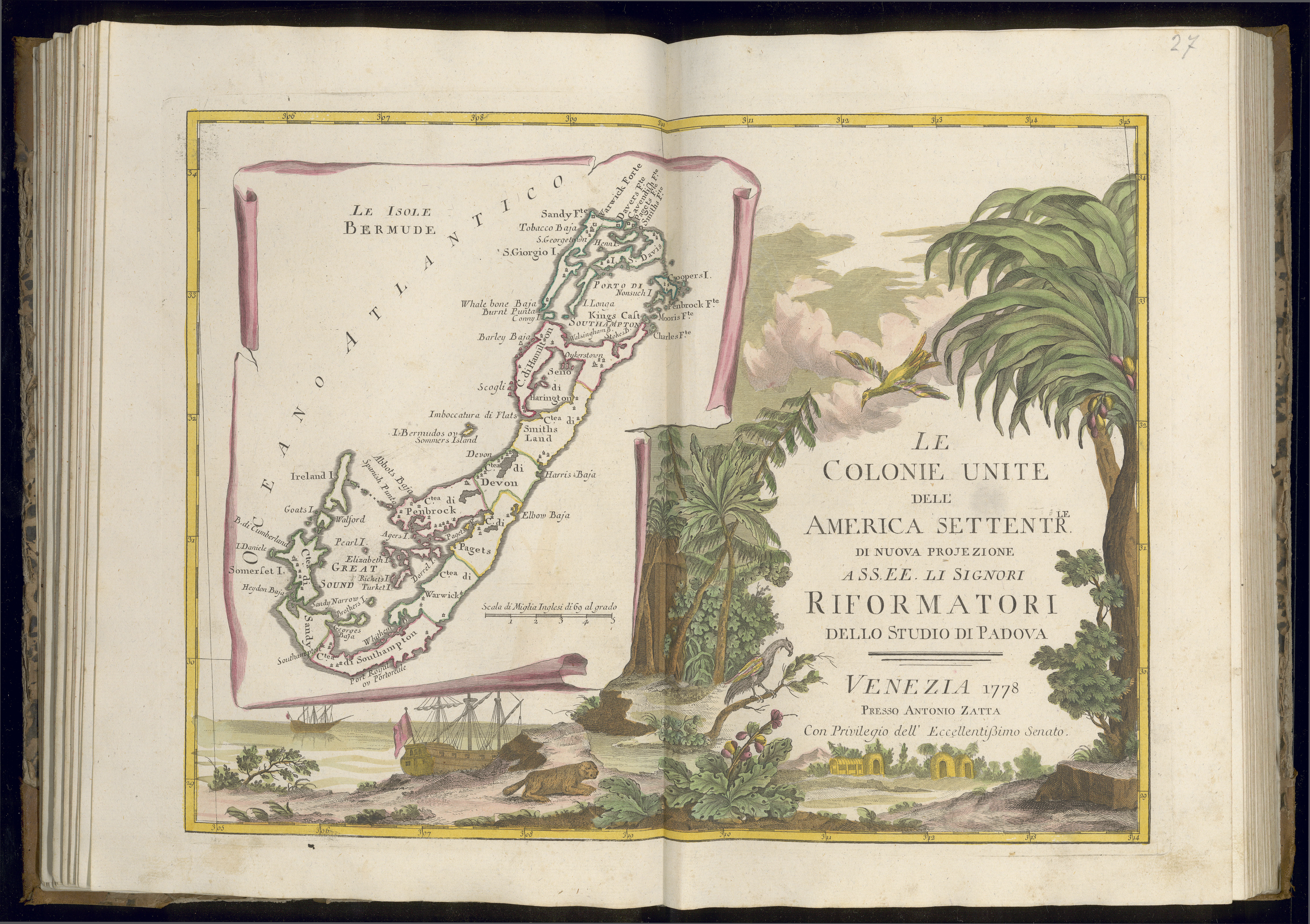 Le Isole Bermude - Le Colonie Unite dell'America Settentrionale, ASS.EE. li Signori Riformatori dello Studio di Padova (1778).