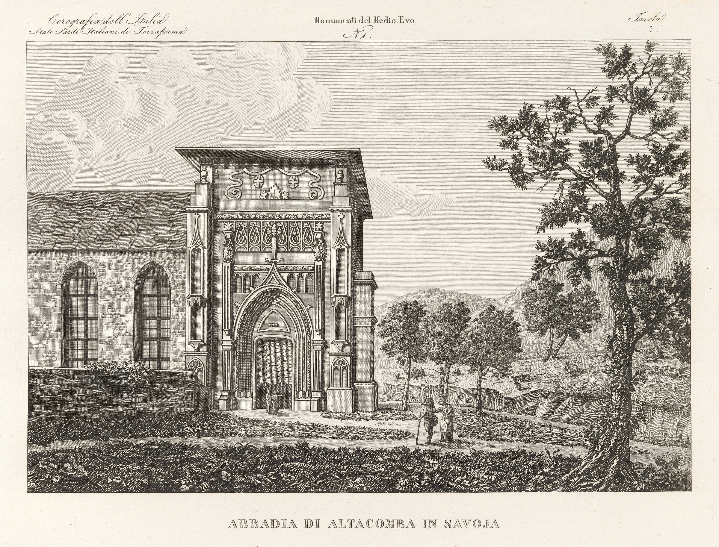 Dal 1° volume di "Atlante illustrativo ossia raccolta dei principali monumenti italiani antichi, del Medio Evo e moderni e di alcune vedute pittoriche, per servire di corredo alla Corografia fisica, storica e statistica dell'Italia di Attilio Zuccagni-Orlandini. Firenze 1845".