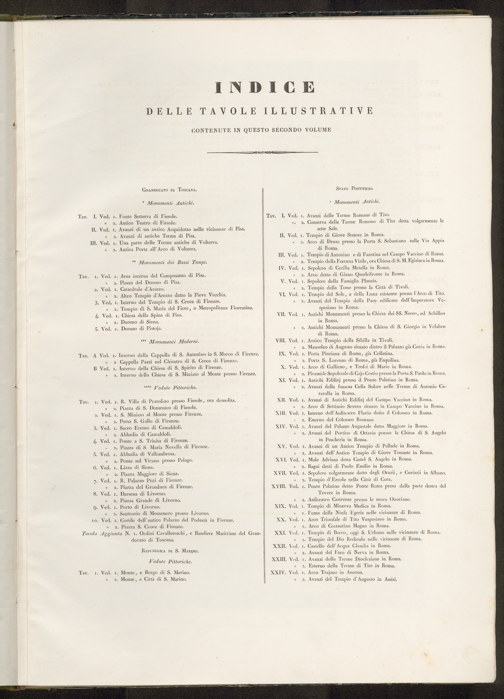 Indice delle tavole illustrative contenute in questo 2° volume (parte prima).