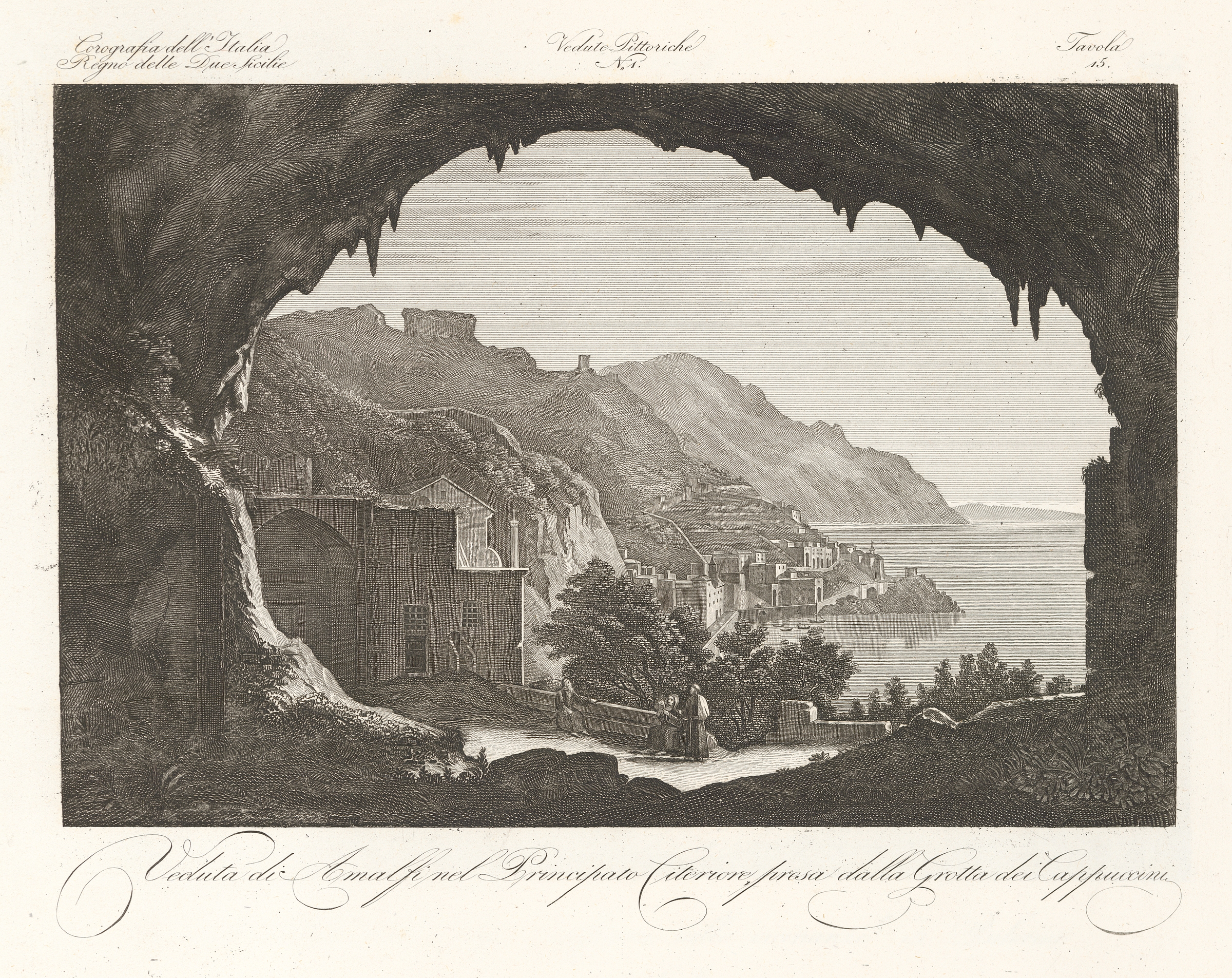 Veduta di Amalfi nel Principato Citeriore, presa dalla Grotta dei Cappuccini.