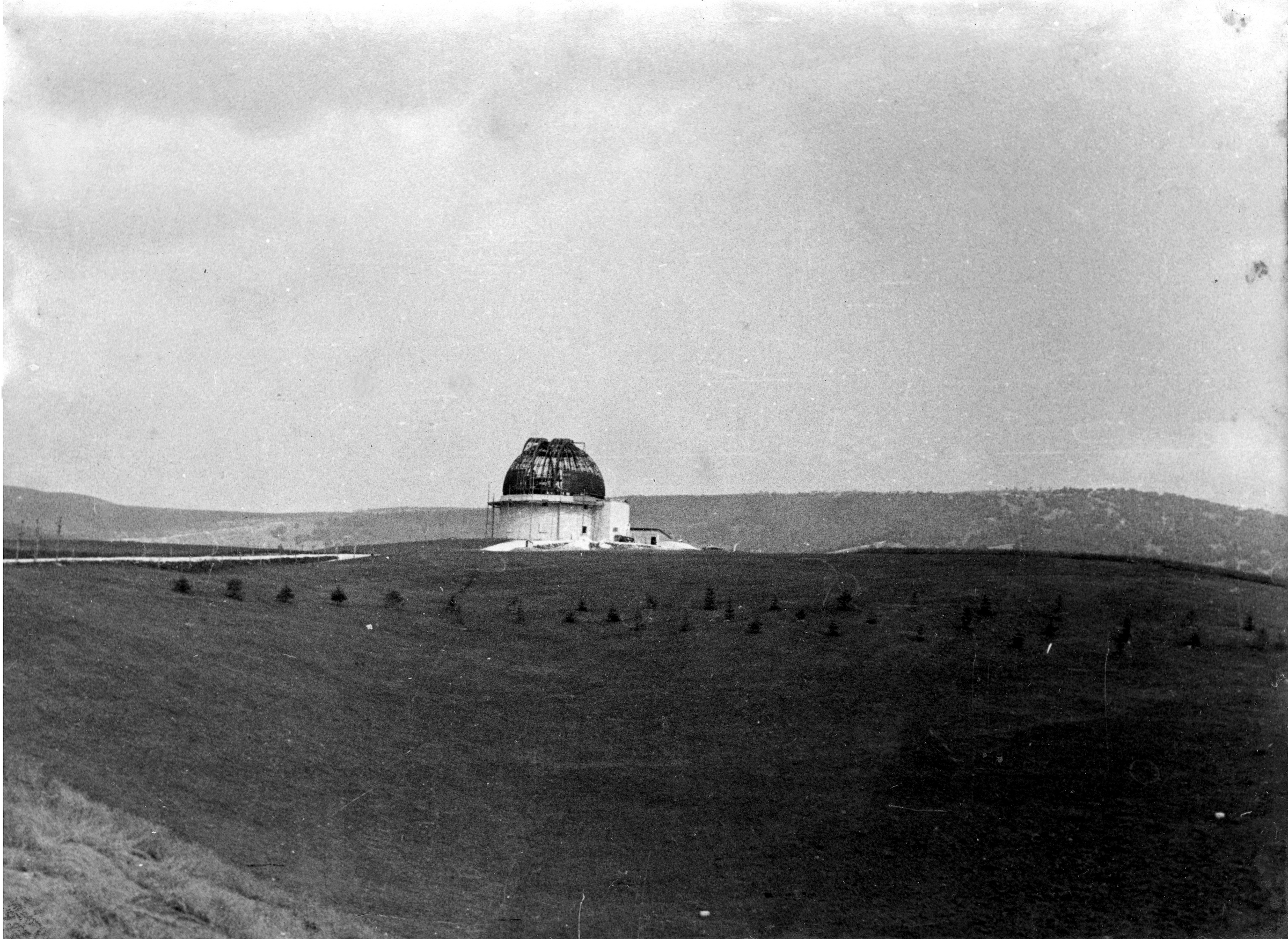 Foto dei lavori di costruzione della cupola contenente il telescopio dell'Osservatorio.
