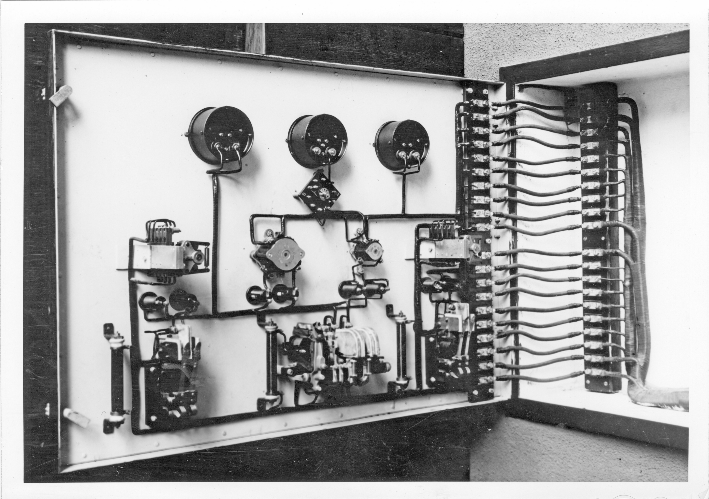 Foto dei lavori di installazione e montaggio del telescopio nella cupola dell'Osservatorio. Interno di uno dei pannelli di comando.