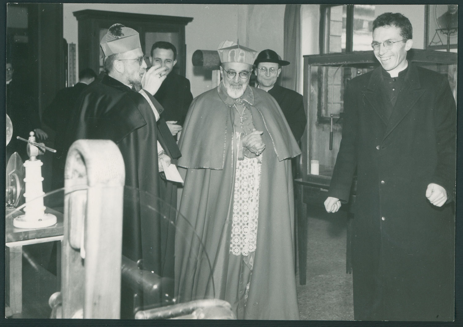 Il cardinale Gregorio Pietro Agagianian (18.9.1895 - 16.5.1971) in visita al Seminario di Padova, 1960: nel gabinetto di fisica con don Marco Restiglian.