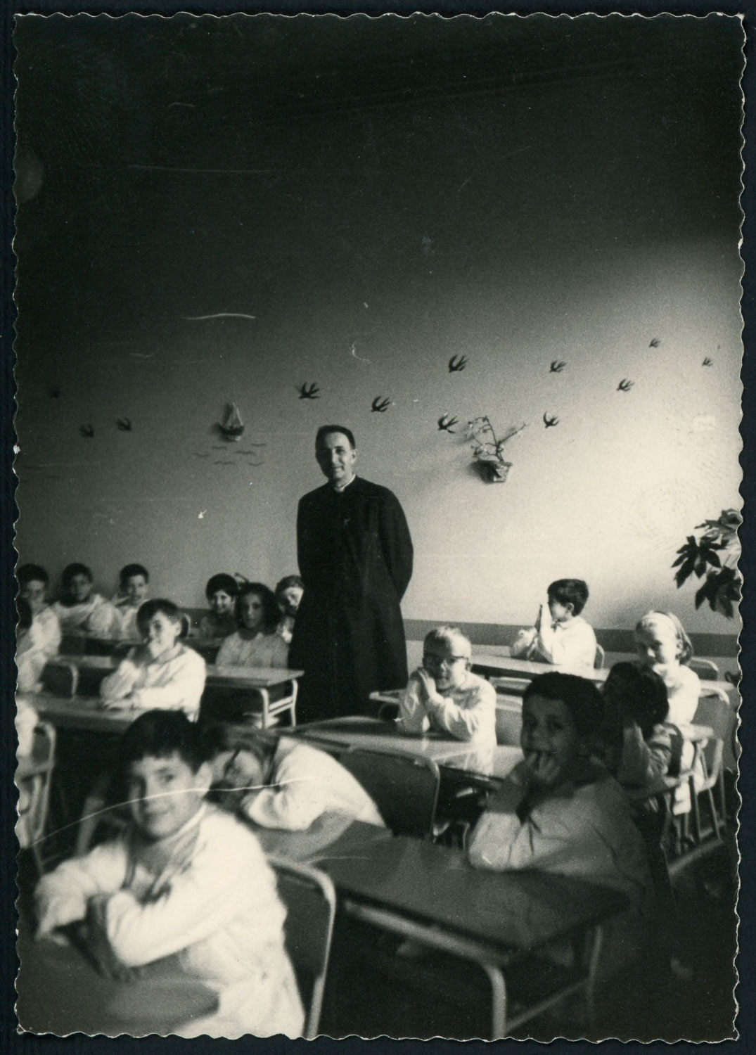 Don Alvise Dal Zotto in una classe terza elementare del Collegio delle "Dimesse", giugno 1965.