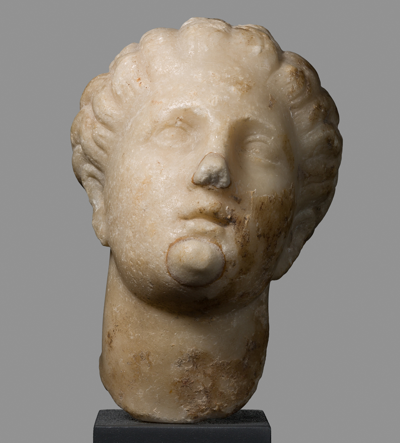 La testina è caratterizzata da una acconciatura detta "a spicchi di melone" (Melonfrisur) nella quale i capelli sono suddivisi in spicchi e poi raccolti sulla nuca con una crocchia. La pettinatura fu utilizzata specialmente dalle principesse tolemaiche nel III sec. a.C. e venne utilizzata sopratutto per la rappresentazione di giovani donne e in statue iconiche. L'origine di questa acconciatura è fatta risalire al IV sec.a.C. , la paternità artistica è dibattuta tra Prassitele, Lisippo e loro allievi.