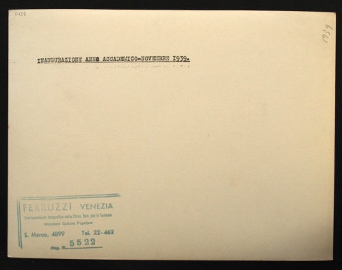Inaugurazione dell'Anno Accademico 1939-1940 a Ca' Foscari. (verso)