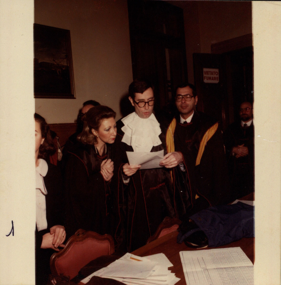 • Luciano Rispoli ; Maria Bergamin ; Ignazio Musu ; Inaugurazione ; anno accademico ; A. A. ; 1983-1984 ; Ca' Dolfin