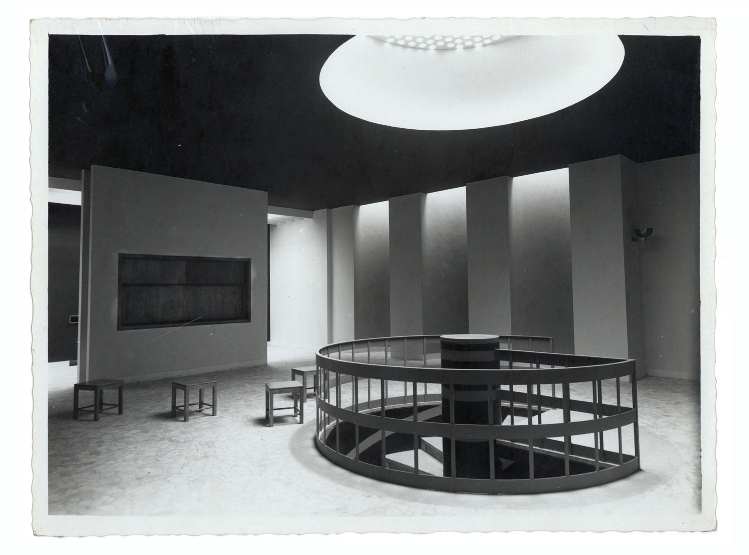 In primo piano è ben visibile la scala elicoidale che conduce alla sala Mantova Benavides e che avrebbe ospitato la raccolta rinascimentale di arte antica. La corona della scala era stata posta in opera il 7 ottobre 1938. L'illuminazione naturale proveniente soprattutto dal lucernaio in vetrocemento e da altre luci zenitali avrebbero illuminano in modo sapiente le opere. A tal riguardo già nel il 3 febbraio del 1937 Gio Ponti scriva ad Anti che "ho visitato a Rotterdam il nuovo modernissimo Museo. Sto vedendo di apportare al nostro Museetto tutti i perfezionamenti che ho visto. Prega di soprassedere a quanto riguarda gli ordinativi dei lucernari.