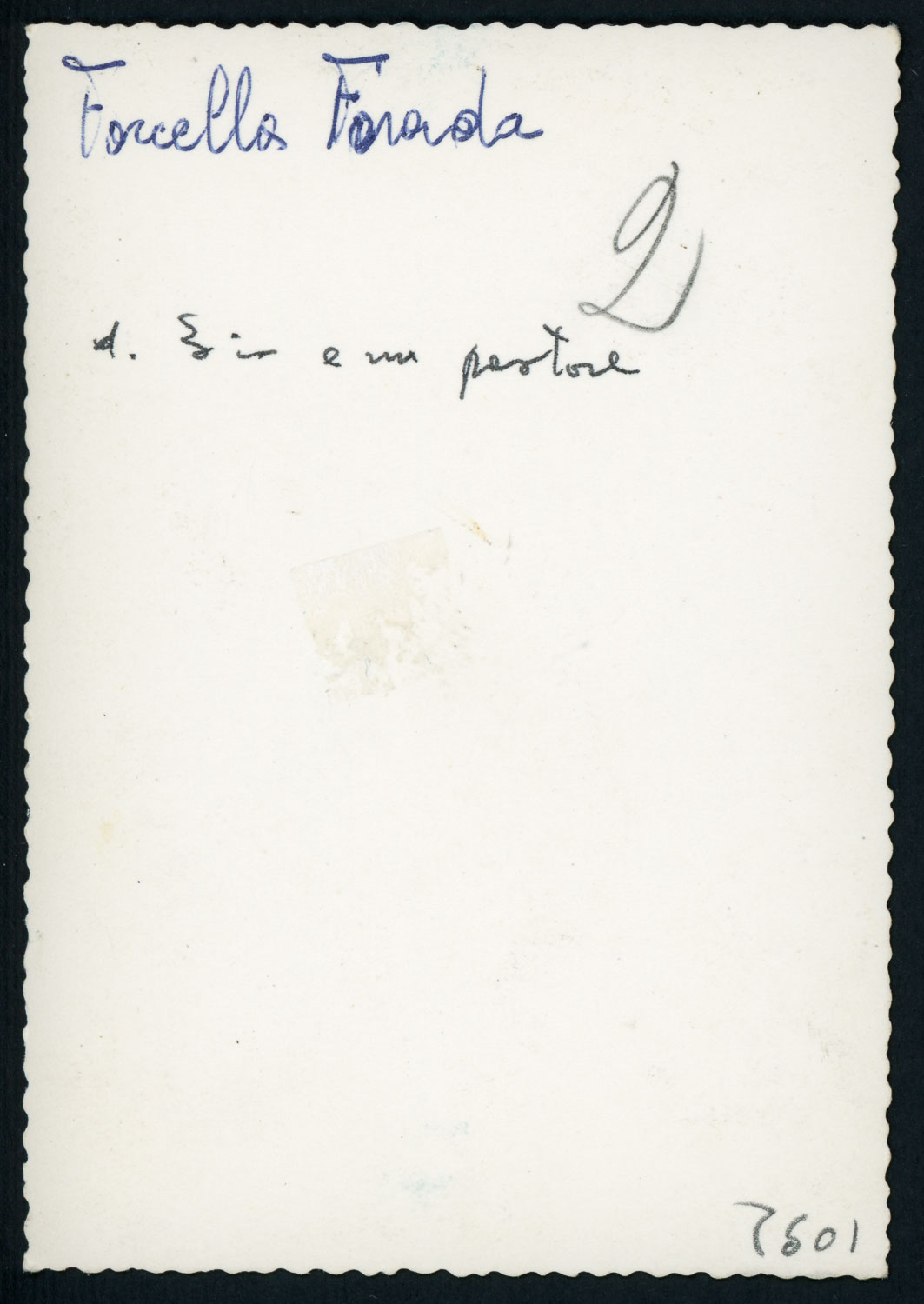 Scritta nel retro della foto: Forcella Forada, don Ezio con un pastore