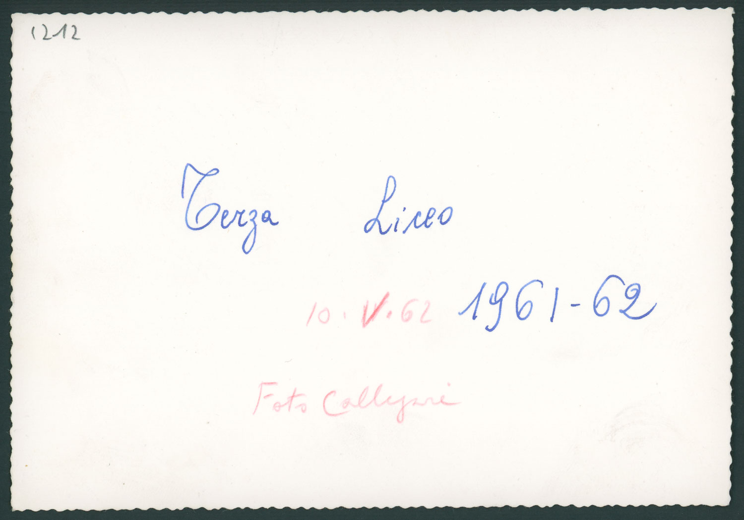 Nota manoscritta sul retro: Terza Liceo 1961762; 10.V.1962; foto Callegari.
