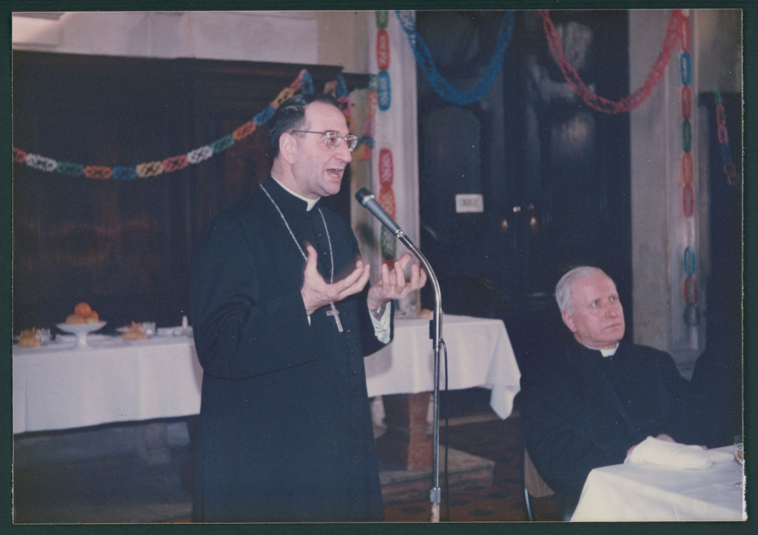 In secondo piano il rettore del Seminario Minore, mons. Anselmo Bernardi.