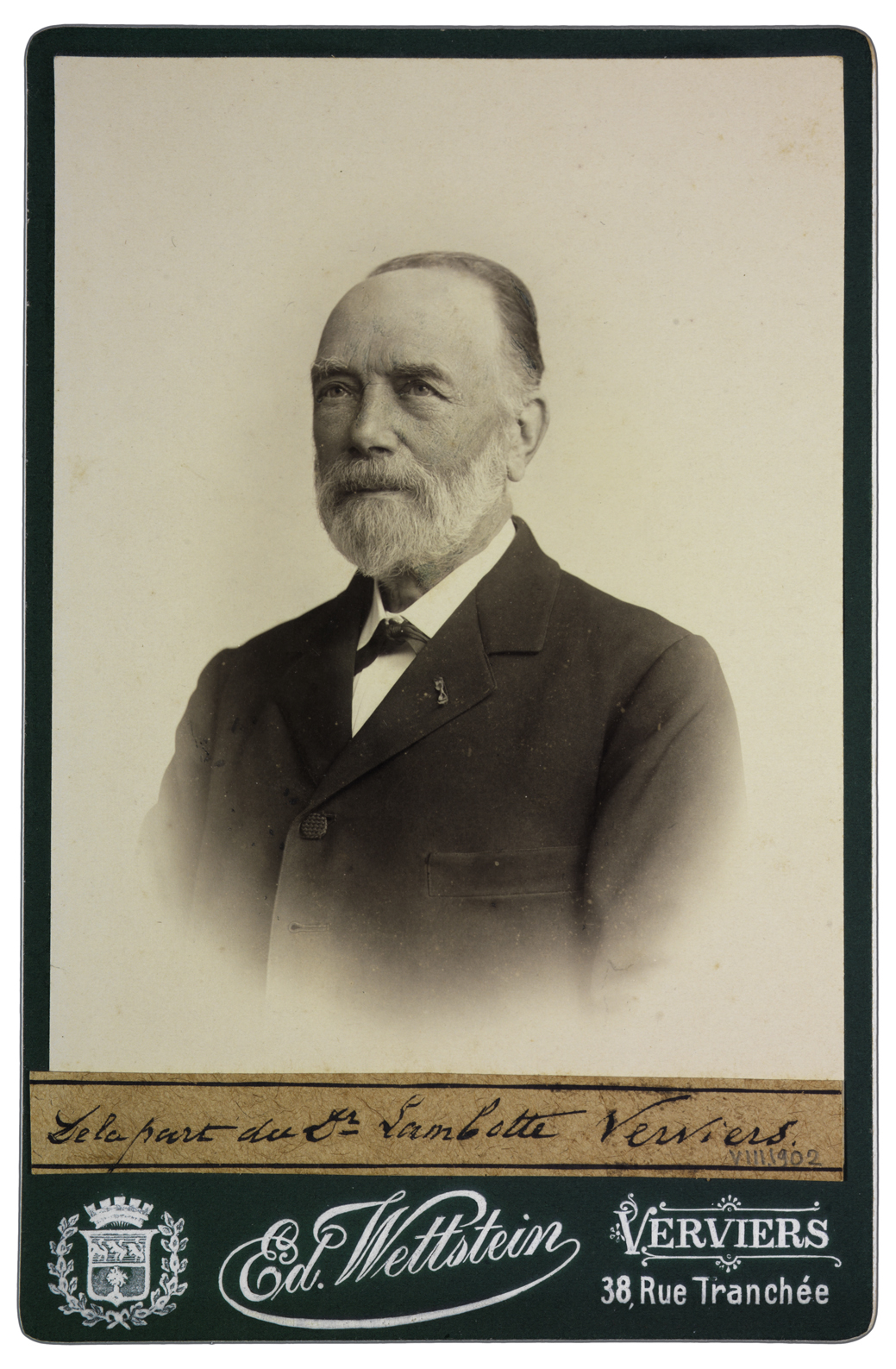Nota manoscritta su carta incollata sul recto: De la part du Dr. Lambotte, Verviers V.III.1902.