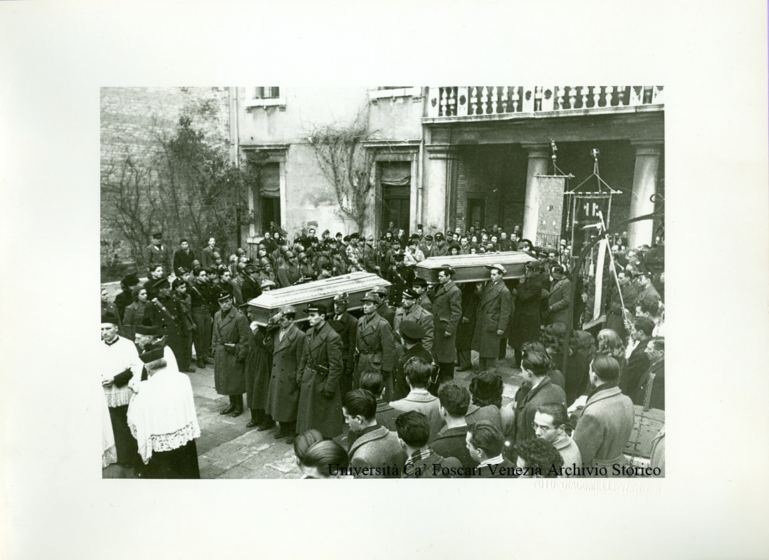 Funerali dei goliardi Antonio Marras e Giacomo Luxardo. Venezia, 24 febbraio 1945. Il corteo funebre