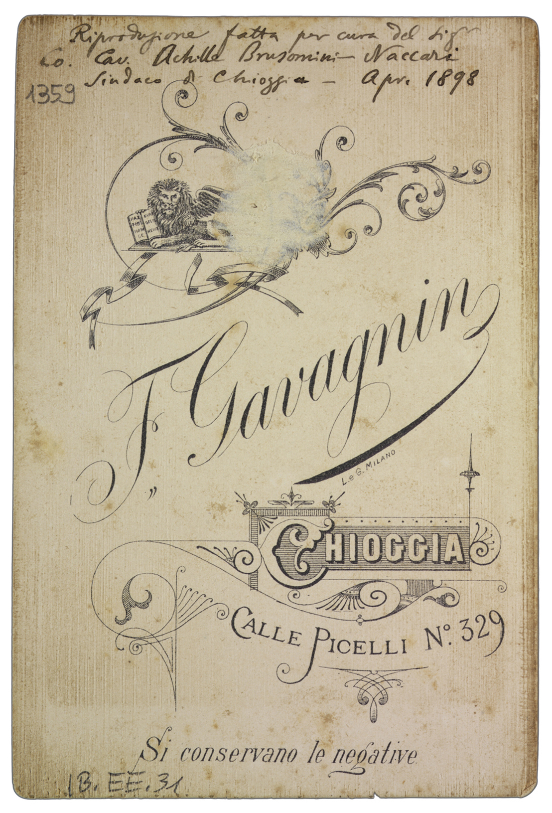 Nota manoscritta sul verso: Riproduzione fatta per cura del sig. Co. Cav. Achille Brusomini-Naccari Sindaco di Chioggia - Apr. 1898.