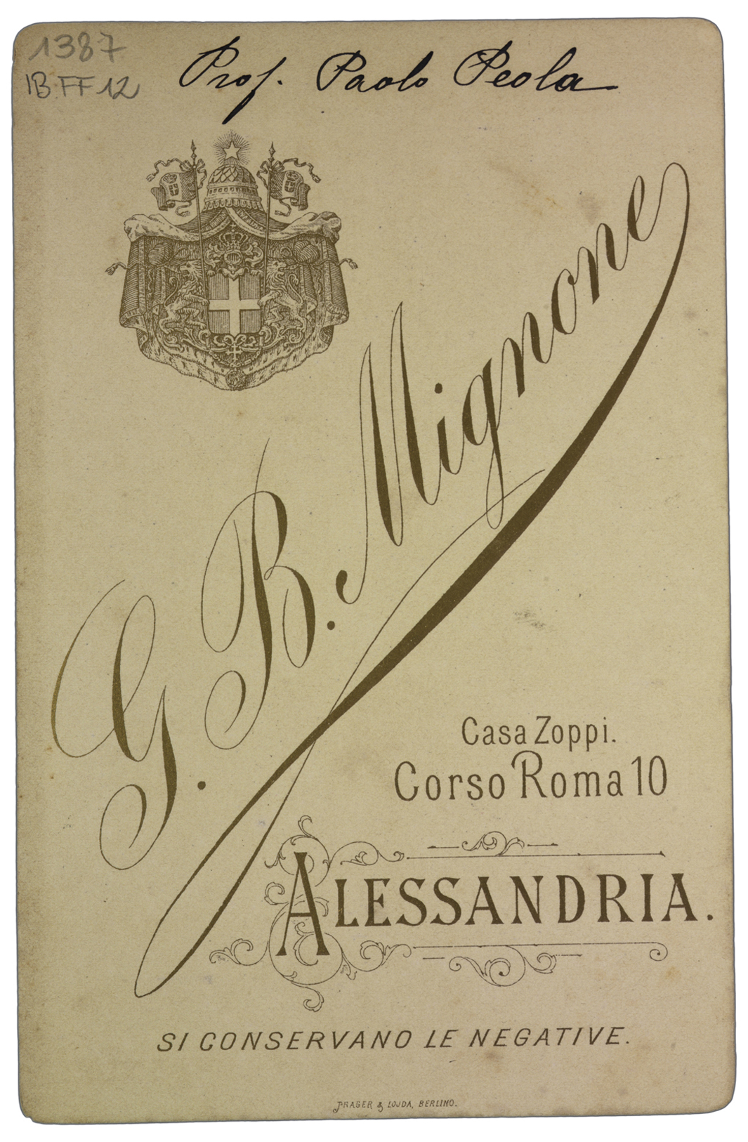 Nota manoscritta sul verso: Prof. Paolo Peola.