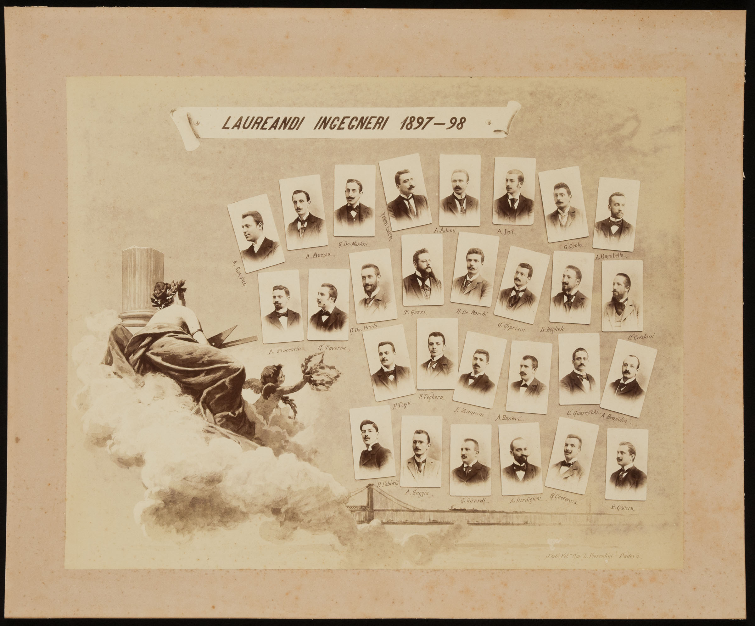 Stampa fotografica dei laureandi della Scuola di Ingegneria dell'Università di Padova, anno accademico 1897-98.