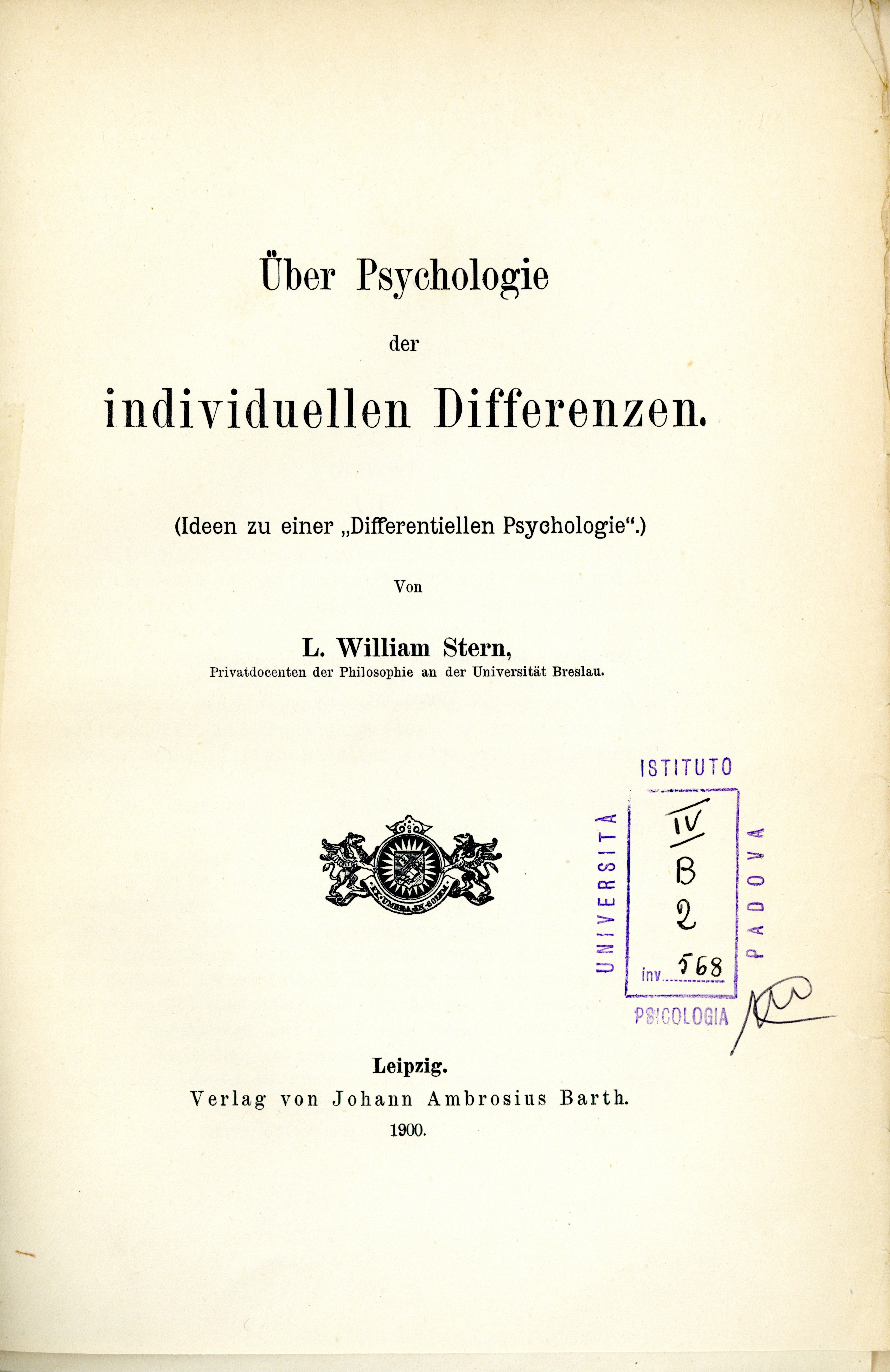 Uber Psychologie der individuellen Differenzen. - Leipzig : J. A. Barth, 1900