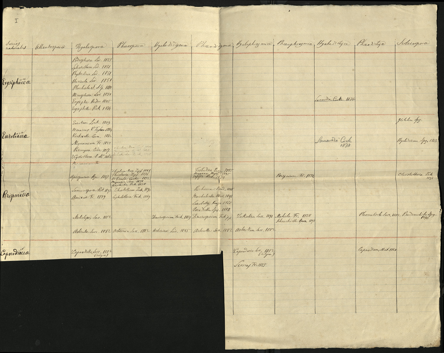 Lista di famiglie e generi fungini: Erysiphaceae, Eurotiacea, Perisporiacea, Capnodiacea.