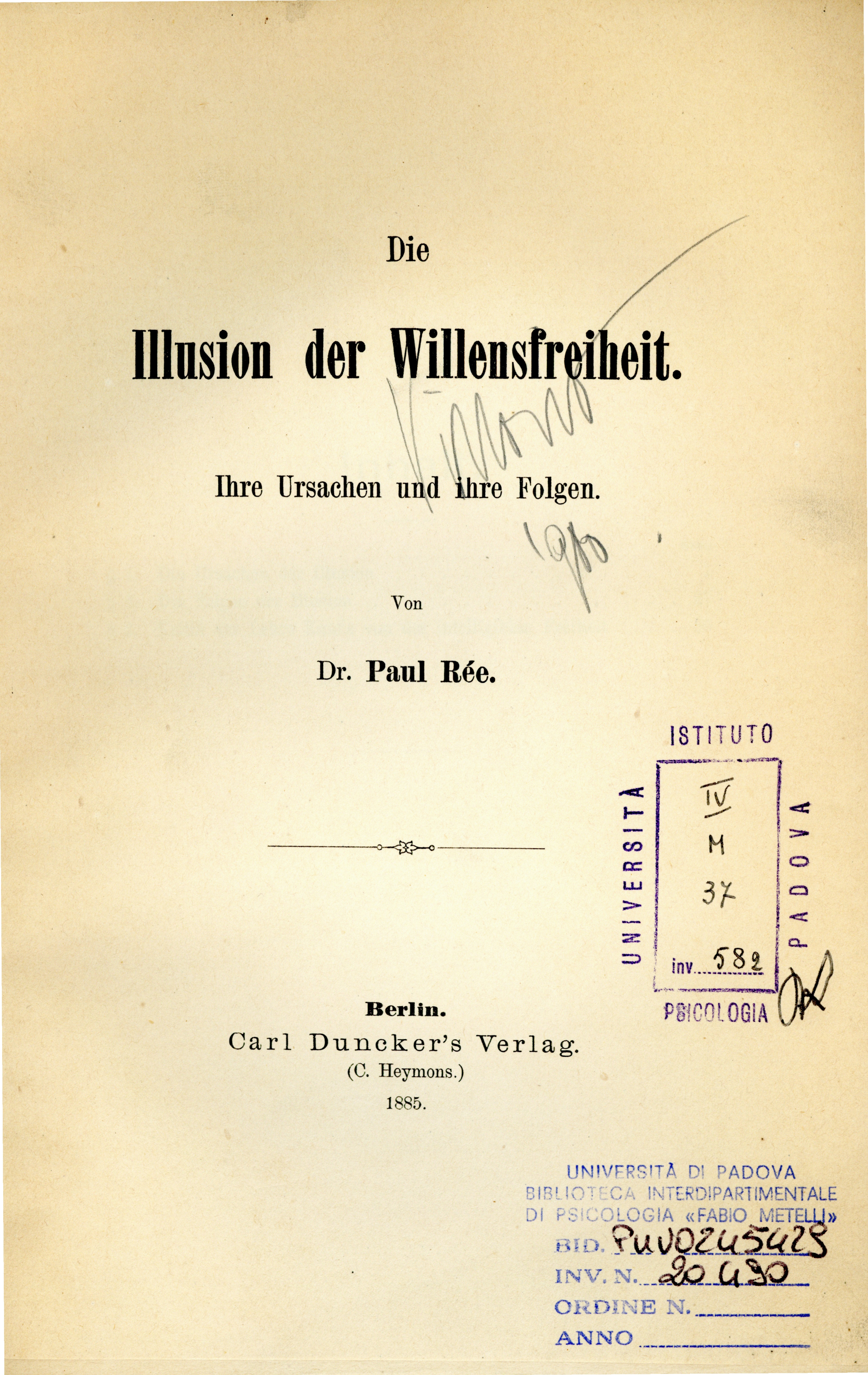Die illusion der Willensfreiheit : ihre Ursachen und ihre Folgen. - Berlin : Carl Dunker’s Verlag, 1885