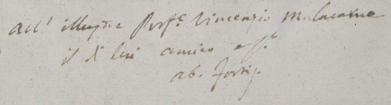 'All' Illustre Prof[esso]re Vincenzio Malacarne, il di lui amico affe[ziona]to ab. Fortis'