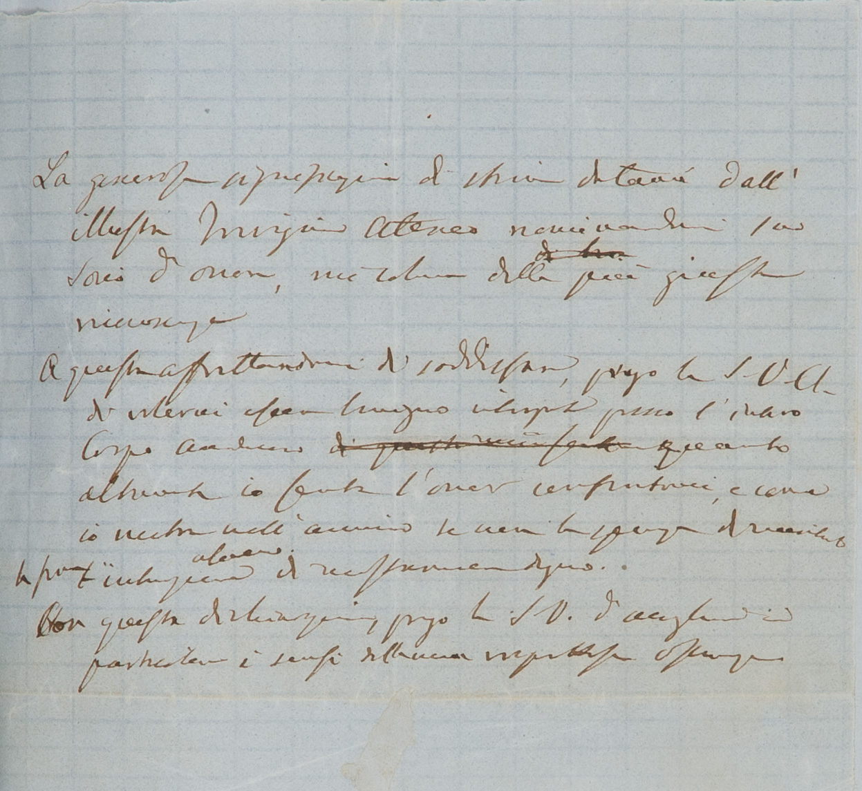 Lettera con la quale si conferisce il titolo di Socio d'onore dell'Ateneo di Treviso a Roberto De Visiani. Il titolo è stato elargito nella seduta del6 luglio ed il documento firmato in data 7 luglio 1865.