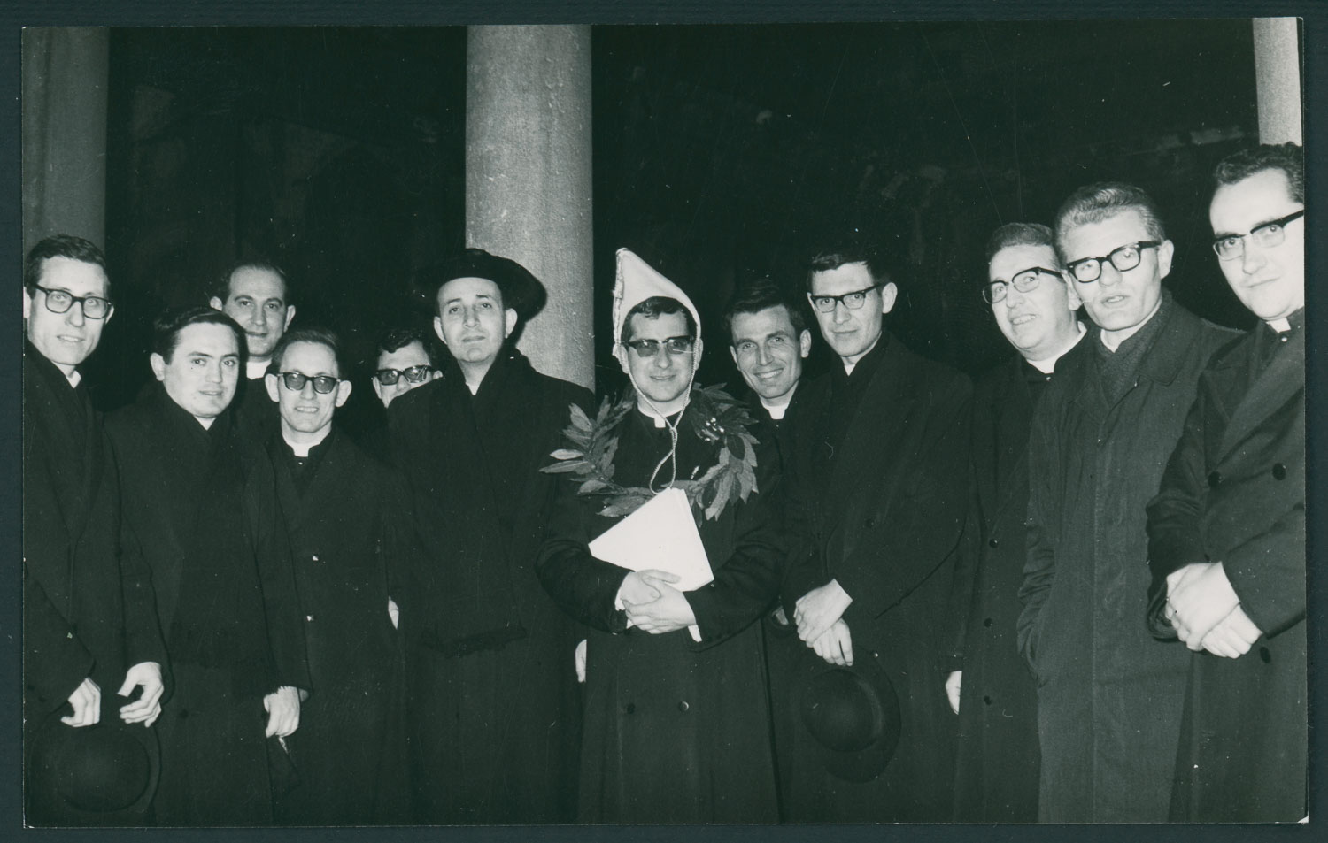 Laurea di don Livio Rebuli. Alla sua destra mons. Alvise Dal Zotto. 4 febbraio 1966.