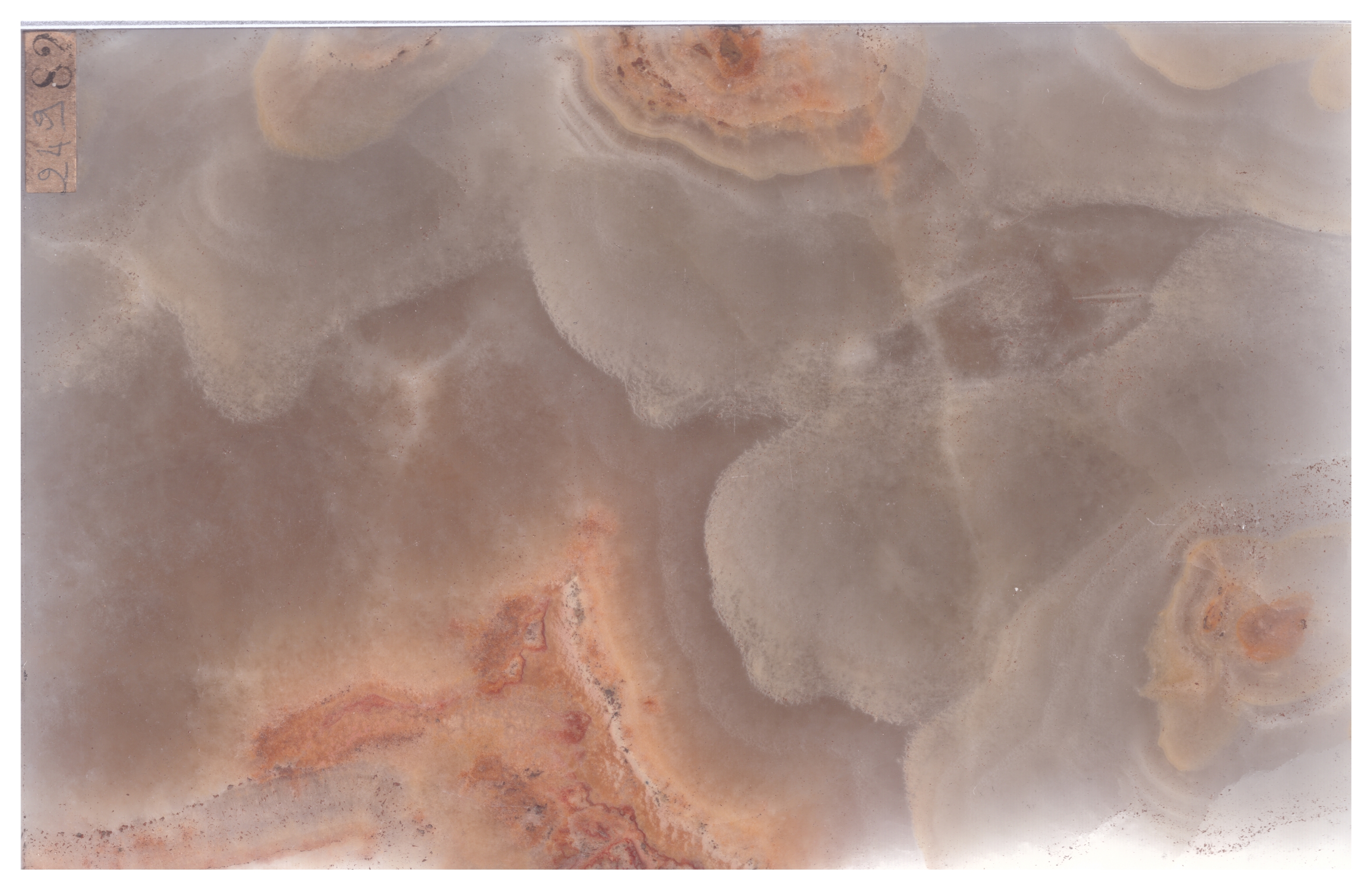 Alabastro appartenente alla collezione delle pietre ornamentali “Sarti” impiegate nell’edilizia del Mondo Antico e del Rinascimento fino al 1876, anno della donazione alla Collezione di Mineralogia “Museo Luigi Bombicci” dell’Università di Bologna da parte dell’architetto Antonio Sarti.