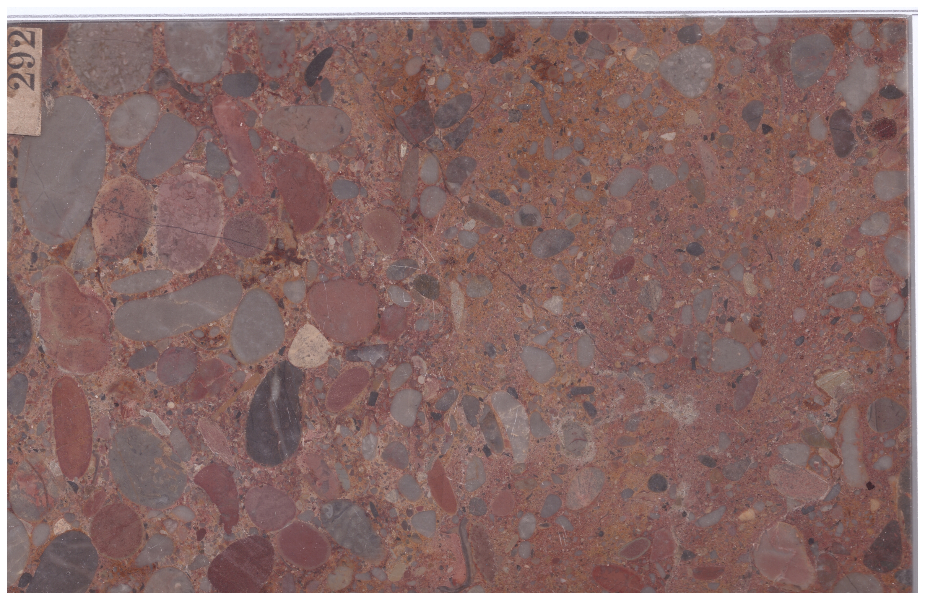 Breccia appartenente alla collezione delle pietre ornamentali “Sarti” impiegate nell’edilizia del Mondo Antico e del Rinascimento fino al 1876, anno della donazione alla Collezione di Mineralogia “Museo Luigi Bombicci” dell’Università di Bologna da parte dell’architetto Antonio Sarti.