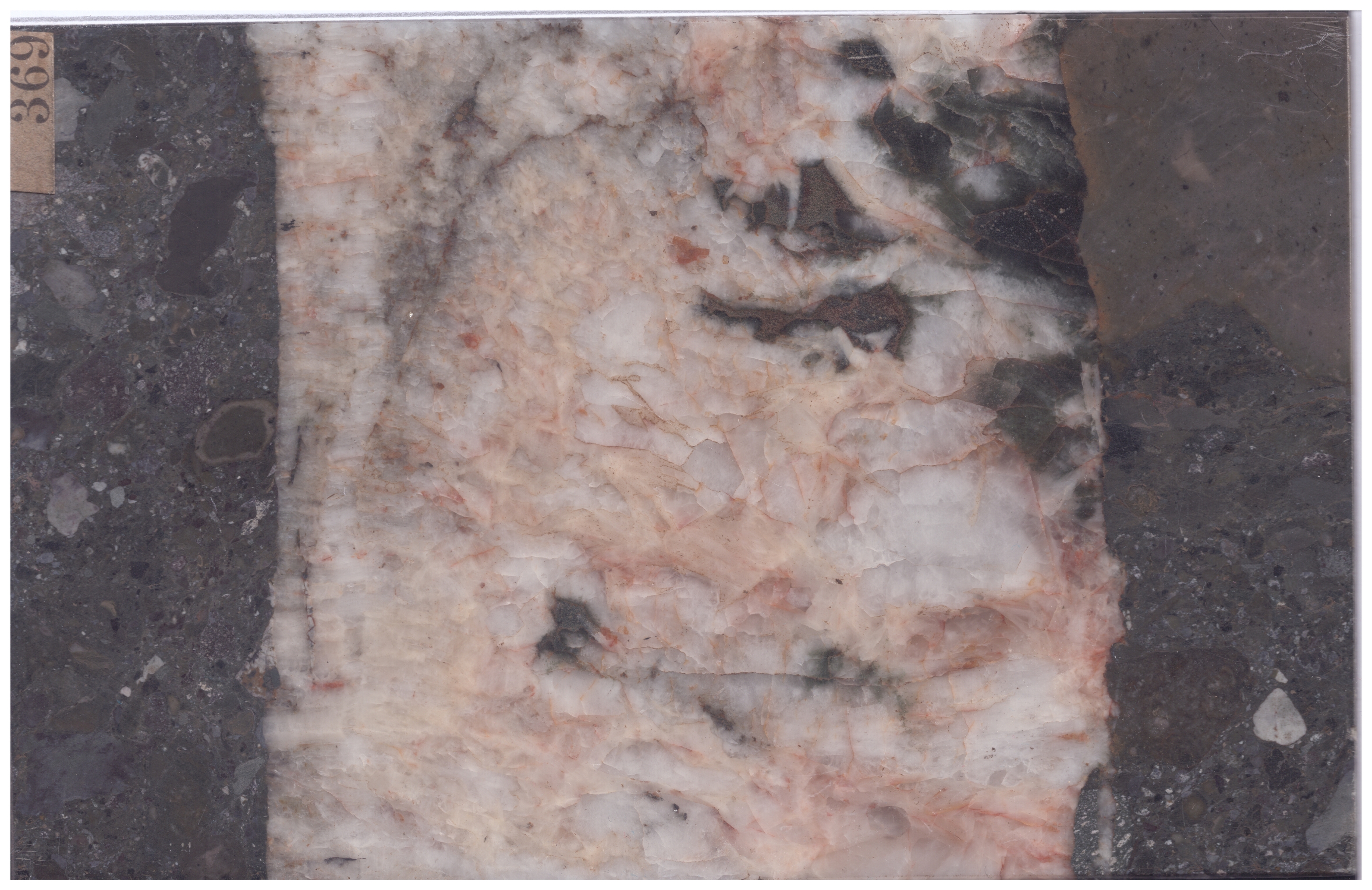 Marmo africano appartenente alla collezione delle pietre ornamentali “Sarti” impiegate nell’edilizia del Mondo Antico e del Rinascimento fino al 1876, anno della donazione alla Collezione di Mineralogia “Museo Luigi Bombicci” dell’Università di Bologna da parte dell’architetto Antonio Sarti.