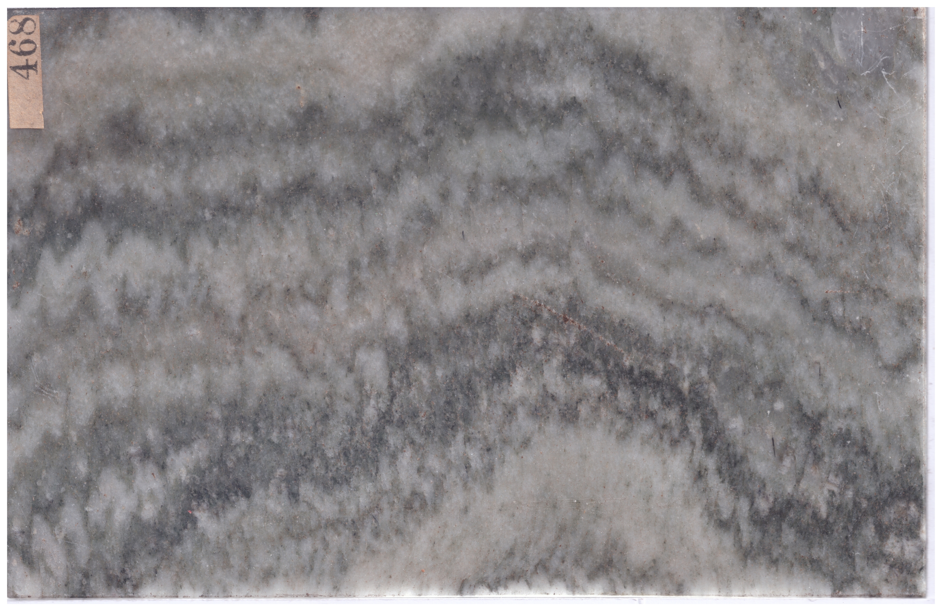 Marmo cipollino appartenente alla collezione delle pietre ornamentali “Sarti” impiegate nell’edilizia del Mondo Antico e del Rinascimento fino al 1876, anno della donazione alla Collezione di Mineralogia “Museo Luigi Bombicci” dell’Università di Bologna da parte dell’architetto Antonio Sarti.