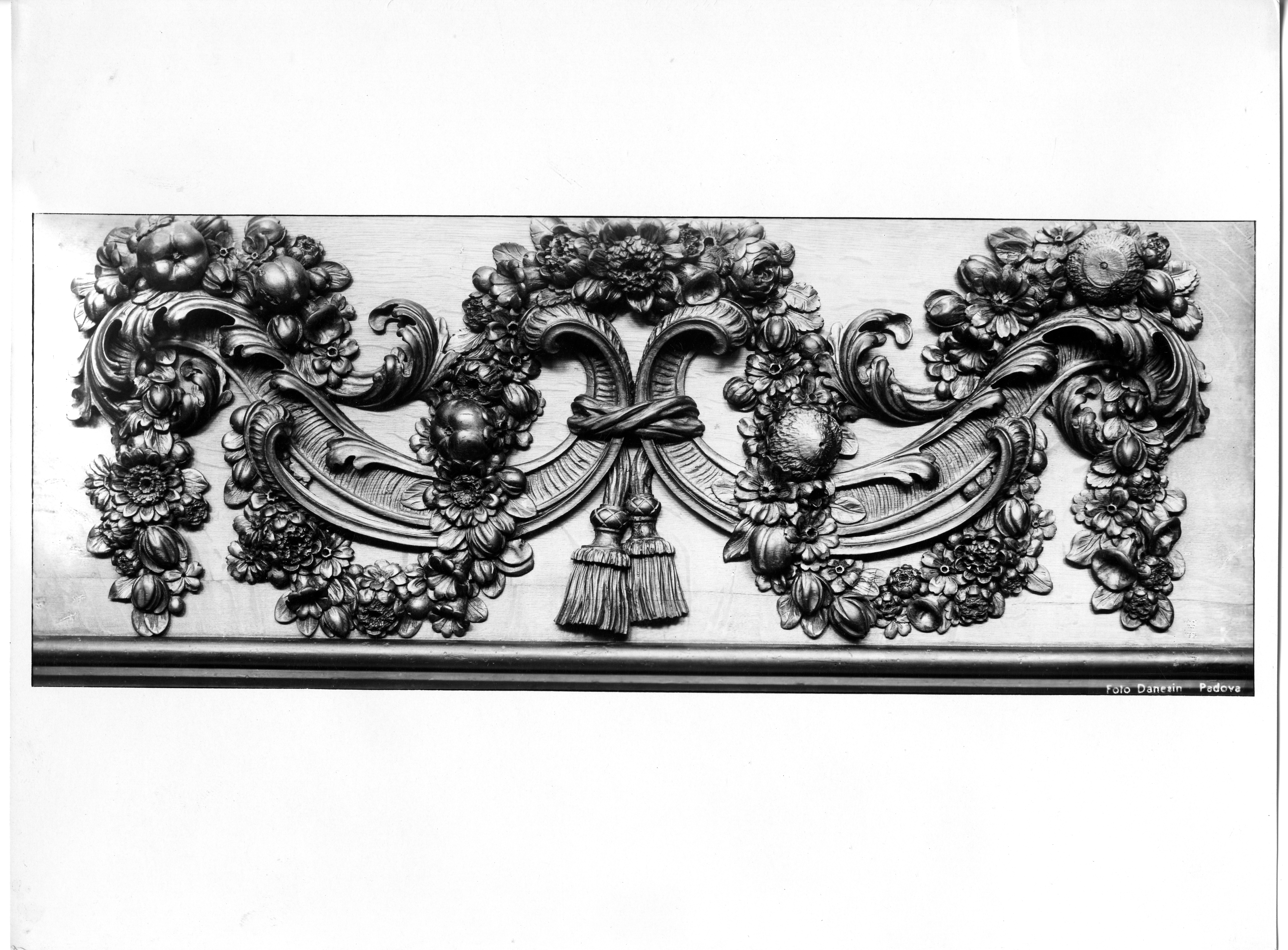 Note: Santa Giustina: Biblioteca, partic. scultura legno; 1940.7.10; Danesin
