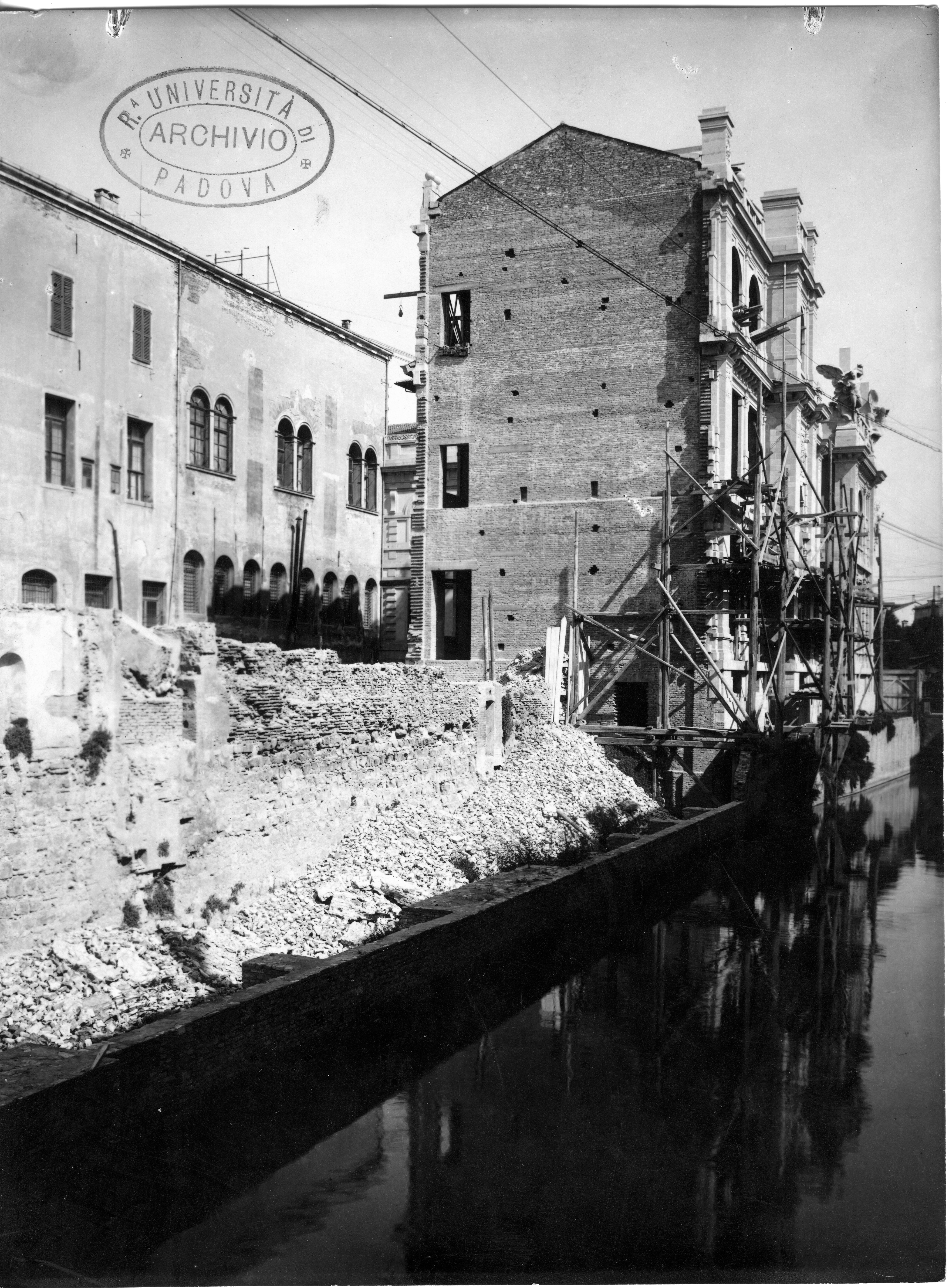 Palazzo Bo, costruzione degli istituti lungo il naviglio interno, attuale Riviera dei Ponti Romani