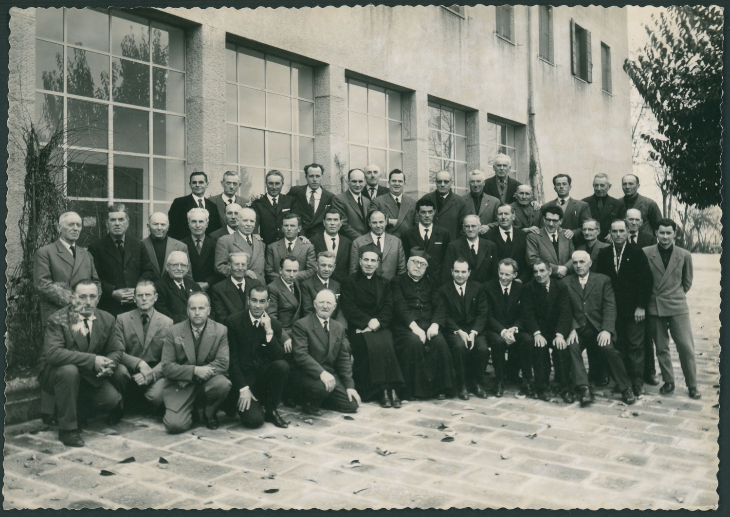 Incontro di uomini dell'Azione Cattolica a Villa Immacolata, Torreglia, con mons. Codemo e mons. Brazzo (?). Tra i presenti Plinio Piccolo.