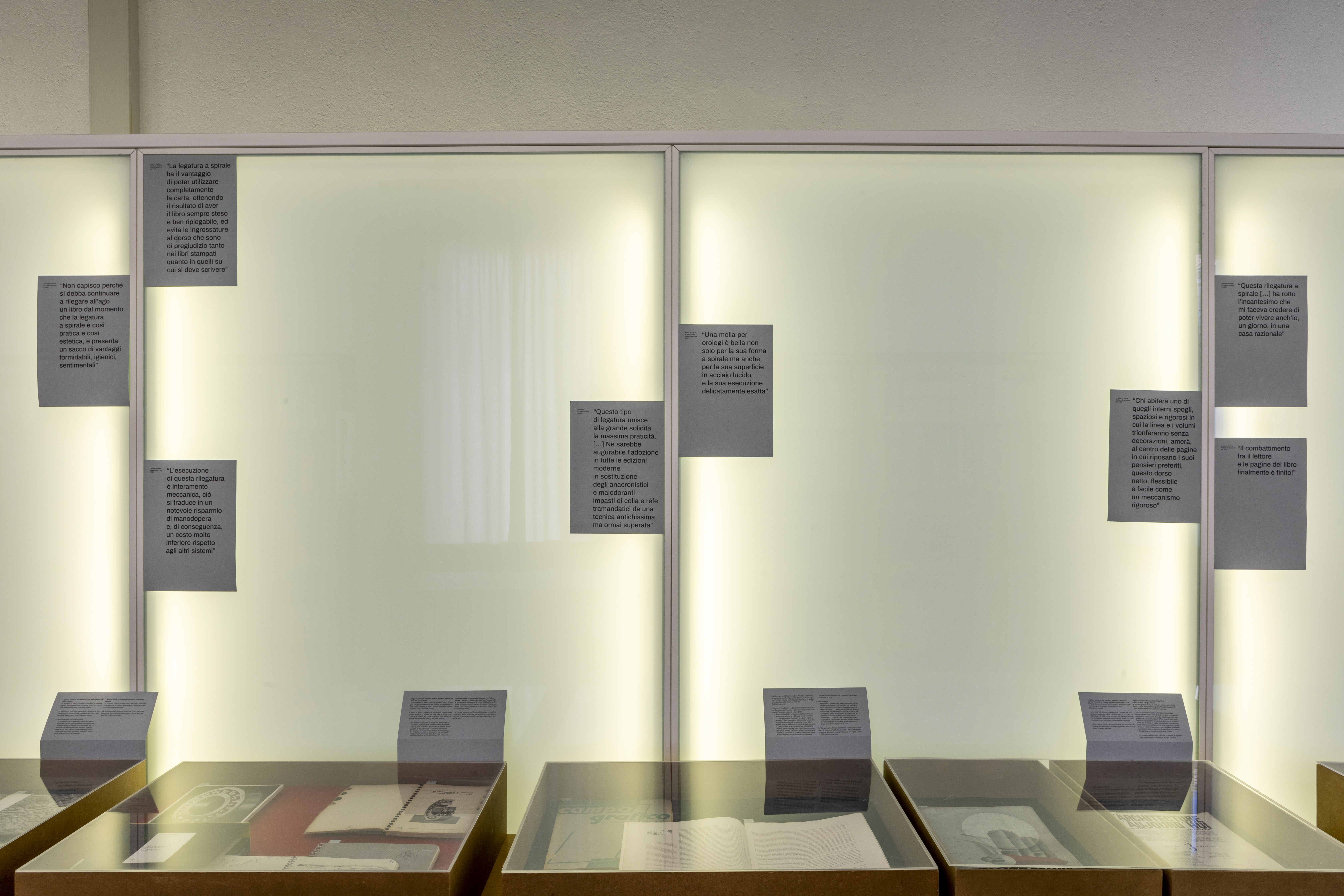 “non capisco perché si debba continuare a rilegare all’ago un libro dal momento che la legatura a spirale è così pratica e così estetica, e presenta un sacco di vantaggi formidabili, igienici, sentimentali”. [Pietro Maria Bardi, in “Campo grafico”, 5, 1934]
