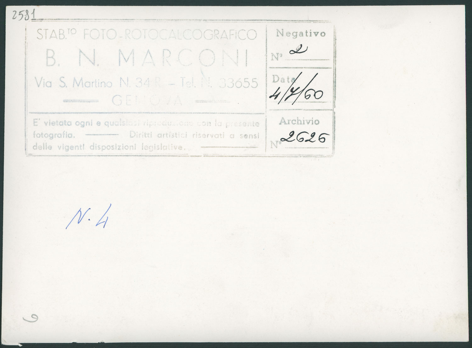 Timbro del fotografo nel retro della foto.