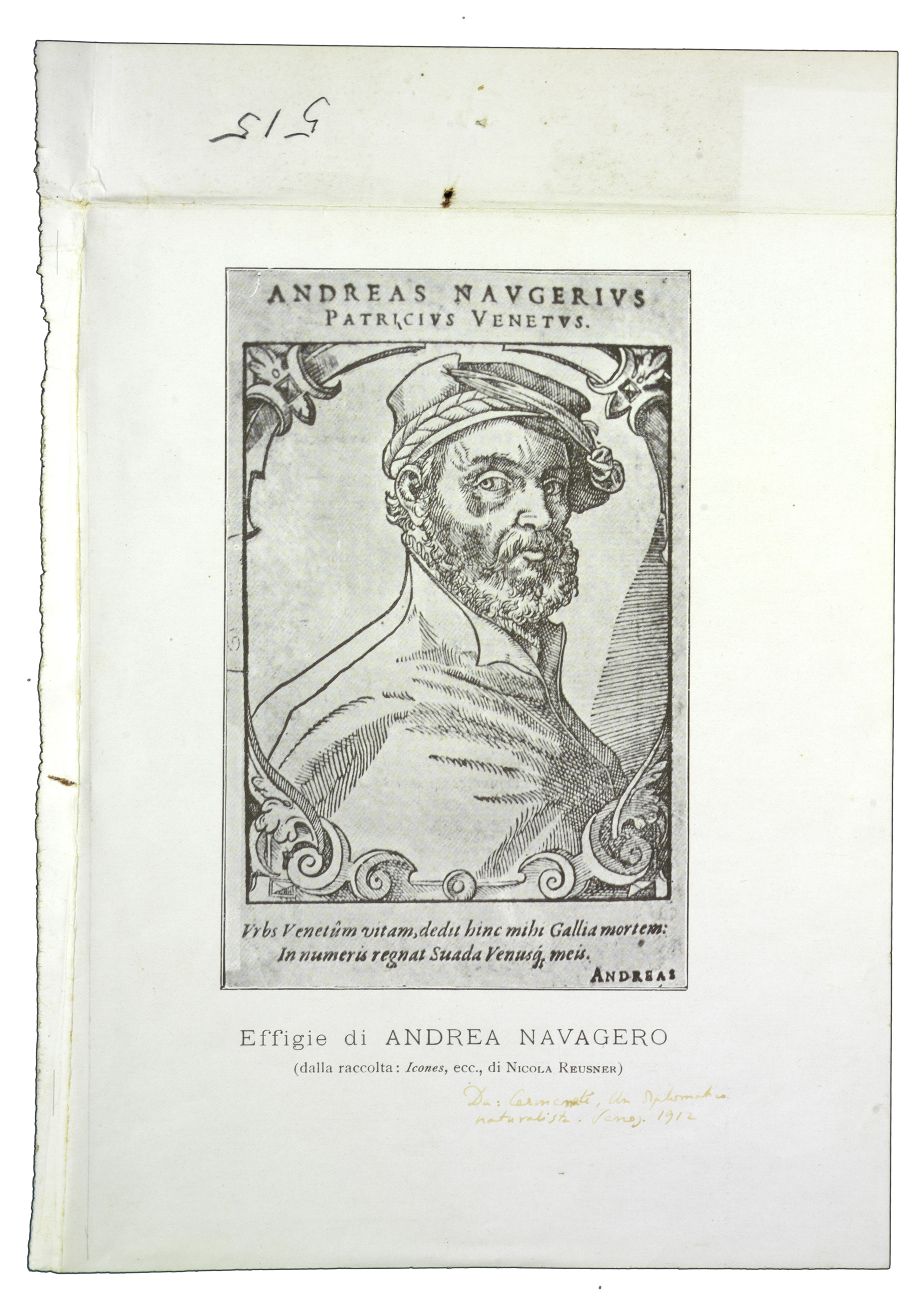 Titolo sul recto, dove compare la nota manoscritta: Da: Cermenati, Un Diplomatico naturalista etc. Venez. 1912. Immagine ritagliata da pubblicazione 244 x 171 mm.