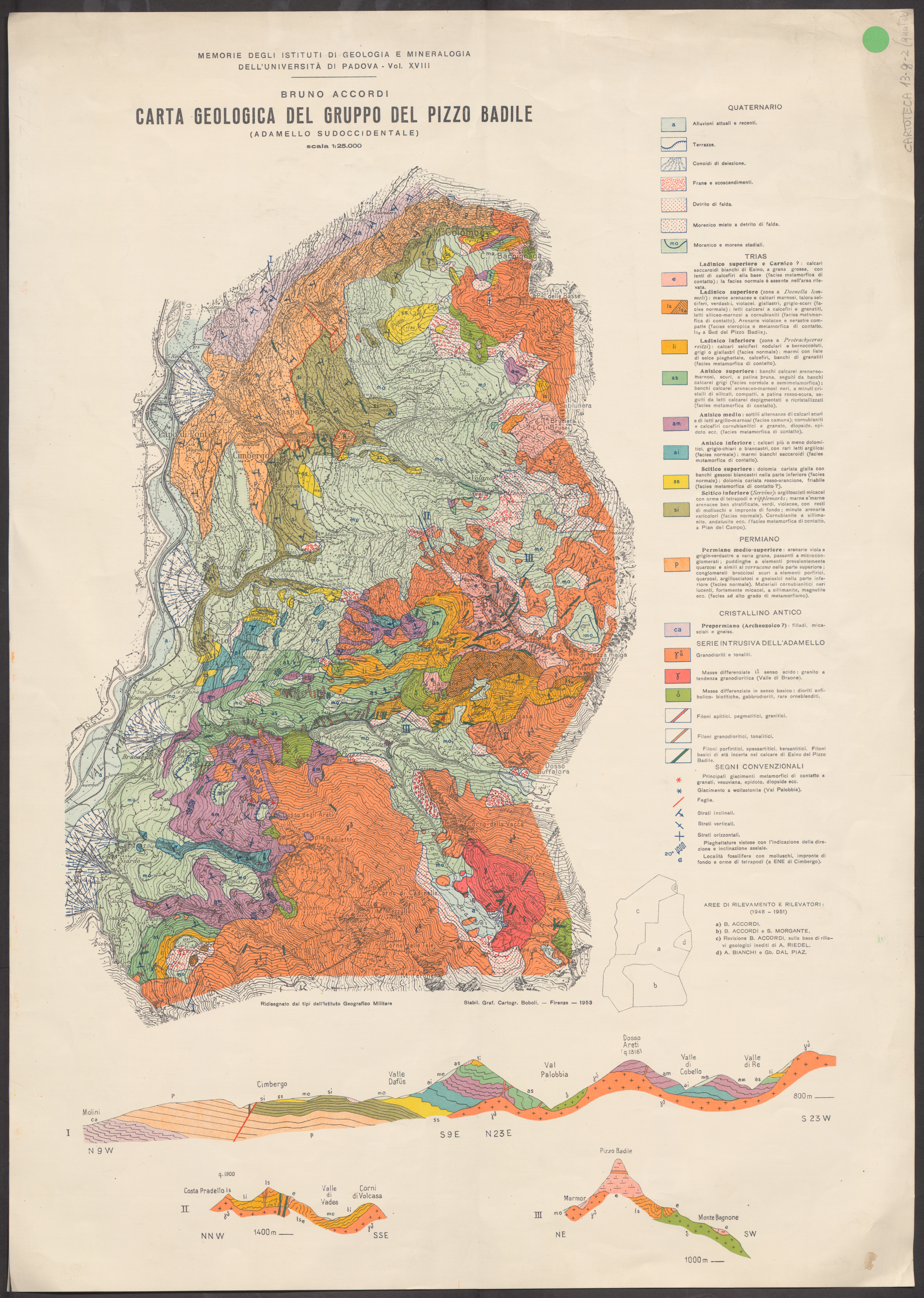 • Carta geologica del gruppo del Pizzo Badile (Adamello sudoccidentale). Firenze, Stabil. Graf. Cartogr. Boboli, 1953.