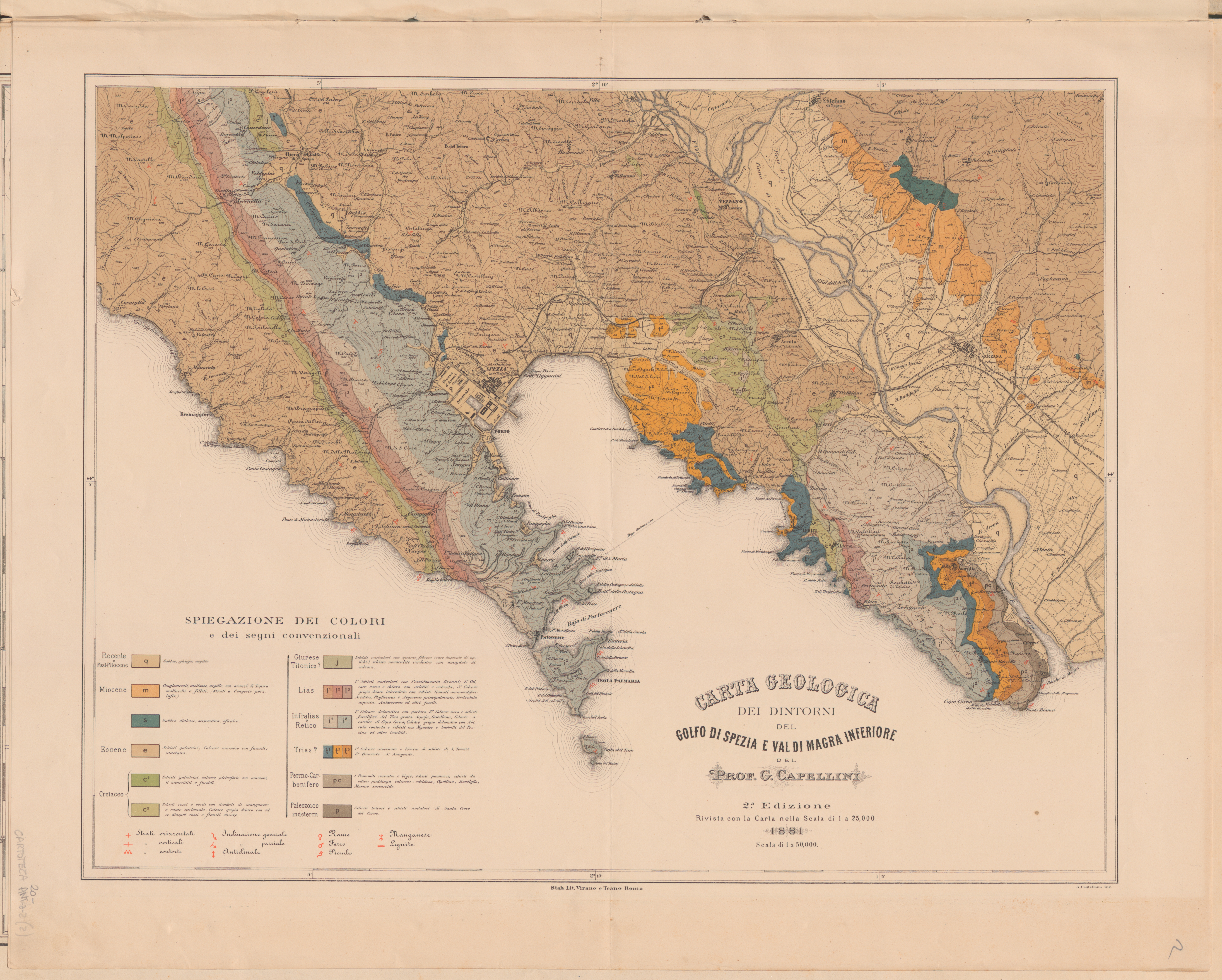 Carta geologica dei dintorni del Golfo di Spezia e Val di Magra Inferiore. 2. Edizione rivista con la carta nella scala di 1 a 25.000