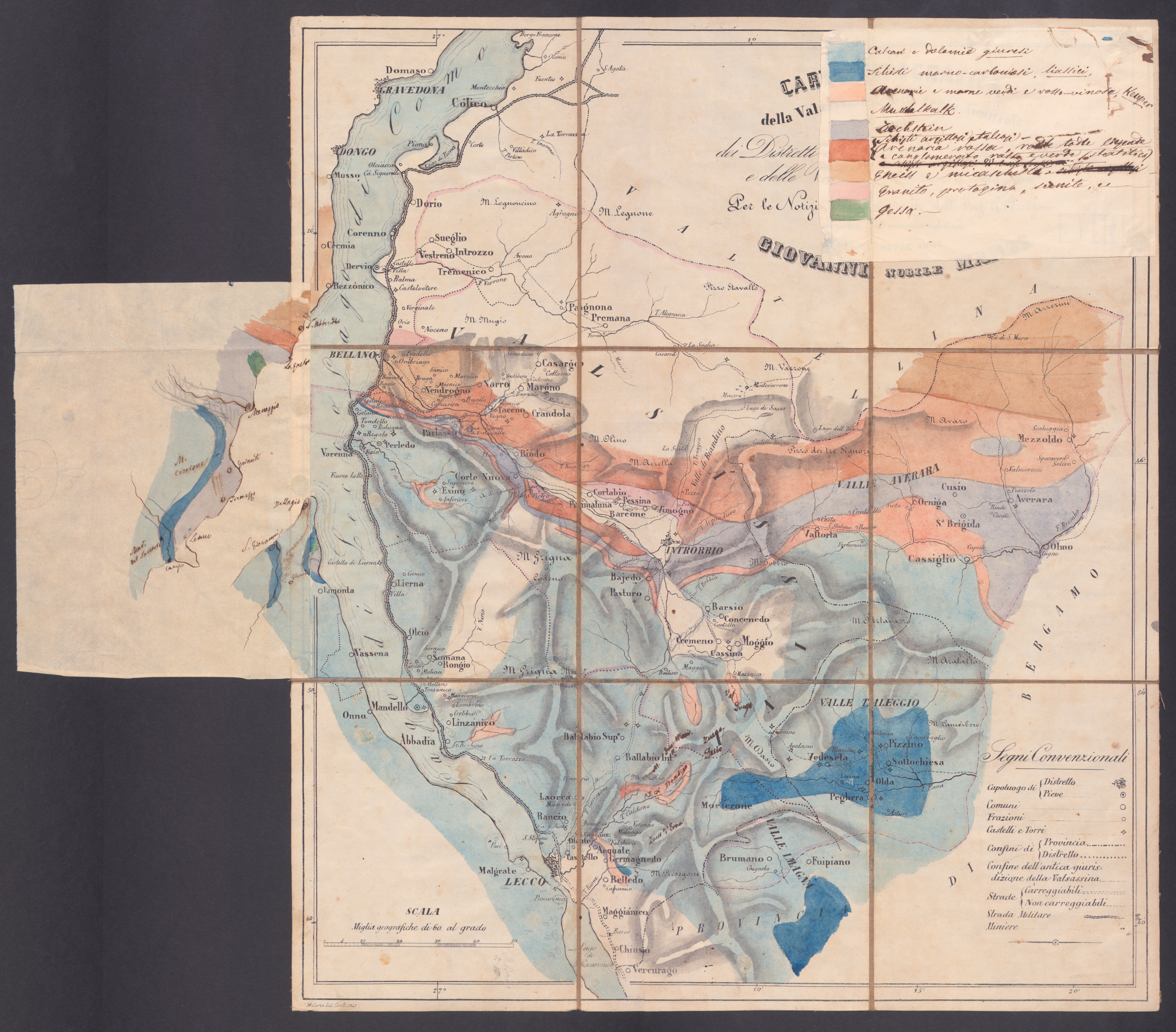 • Carta topografica della Valsàssina e delle terre limitrofe : ossia dei Distretti di Introbbio, Lecco e Bellano e delle Valli Averara e Taleggio. S.l., S.n., 1853.