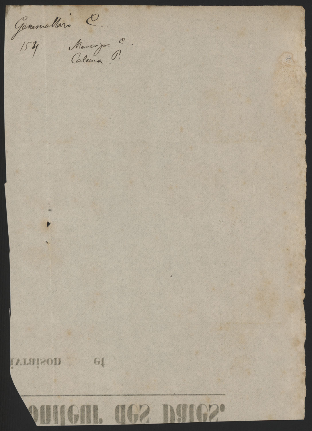 Foglio con nome (Carlo Gemmellaro) e numero (154)