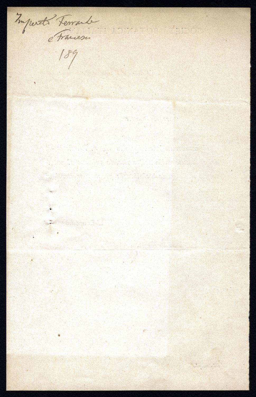 Foglio con nomi (Ferrante e Francesco Imperato) e numero (189)