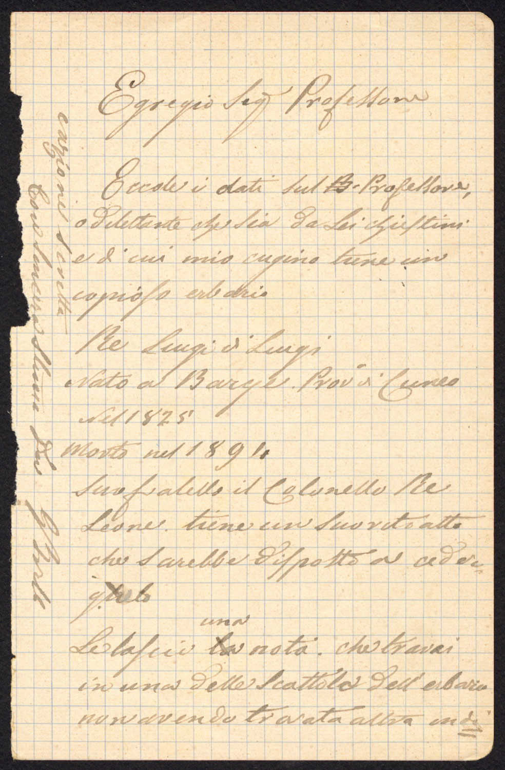 Lettera a Saccardo relativa a Luigi Re