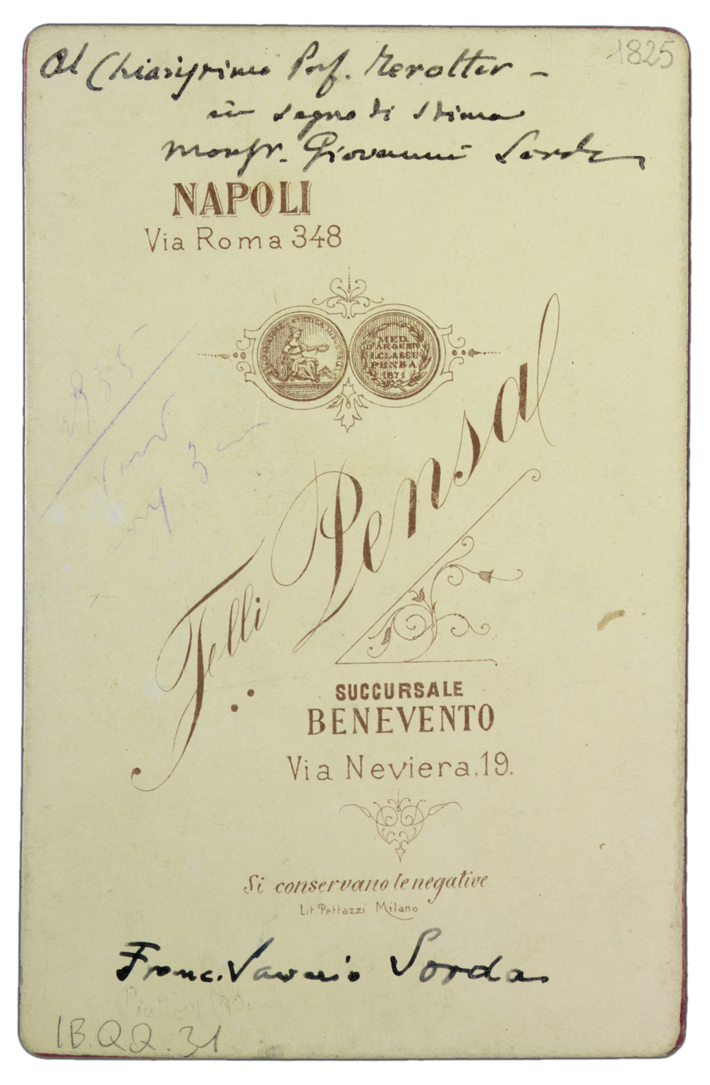 Titolo manoscritto sul verso, dove compare anche la nota: Al Chiarissimo Prof. Trotter in segno di stima [...] Giovanni [...].