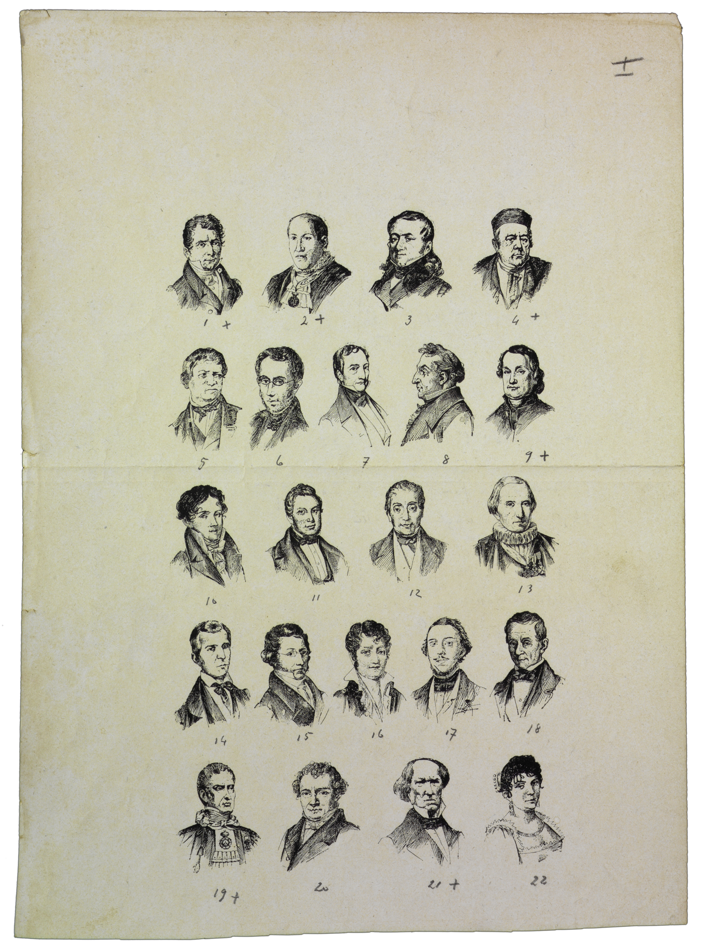 22 ritratti di botanici. Sul verso è presente l'elenco dei botanici ritratti:
