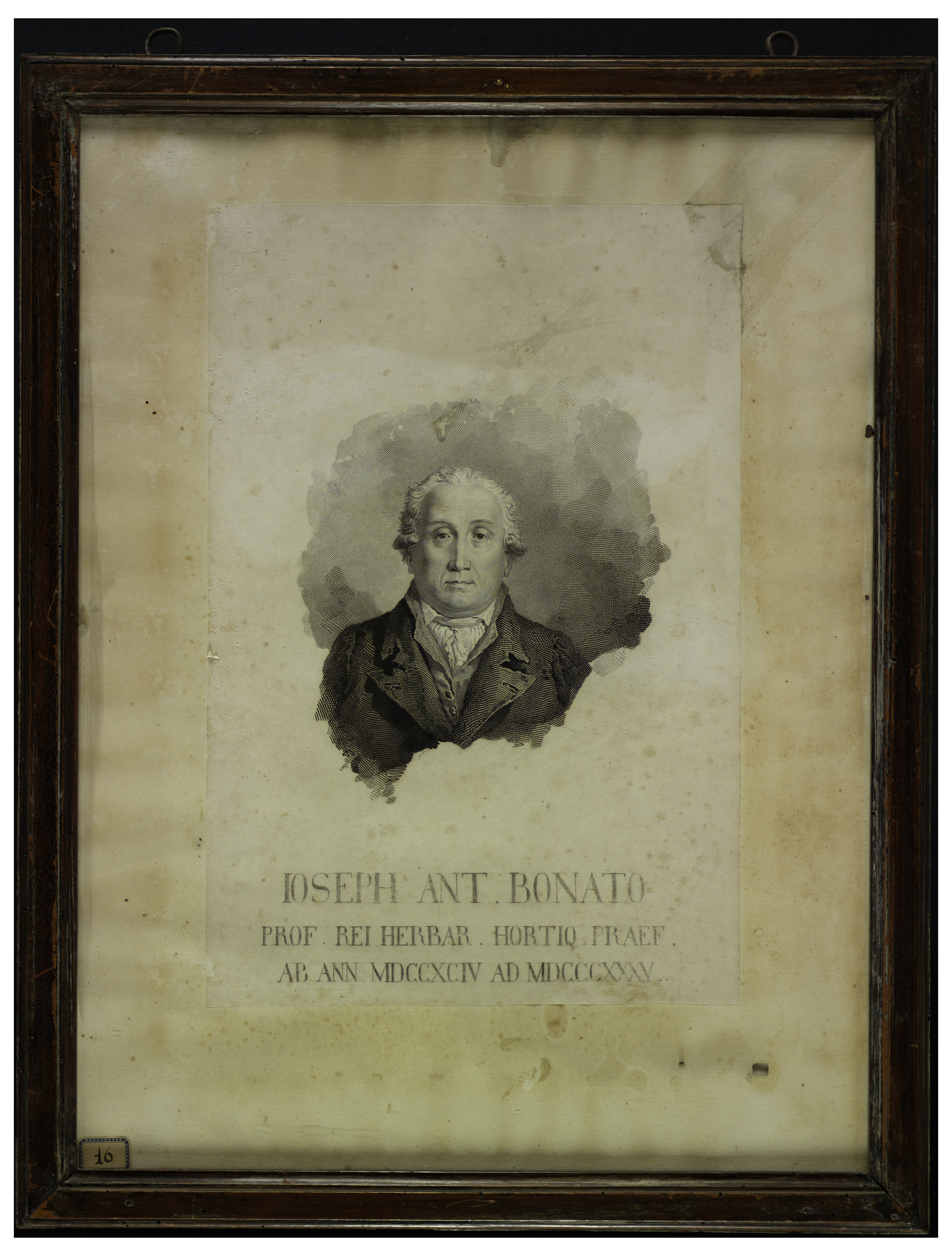 Titolo manoscritto sul recto, accompagnato dalla nota: prof. rei herbar. hortiq. praef. ab ann. MDCCXCIV ad MDCCCXXXV. Nell'angolo in basso è presente un'etichetta riportante il numero 16.