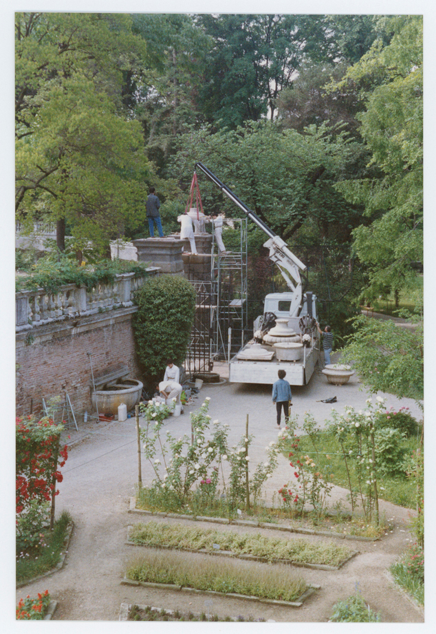 Ricollocazione degli acroteri dell'ingresso nord. Orto botanico di Padova