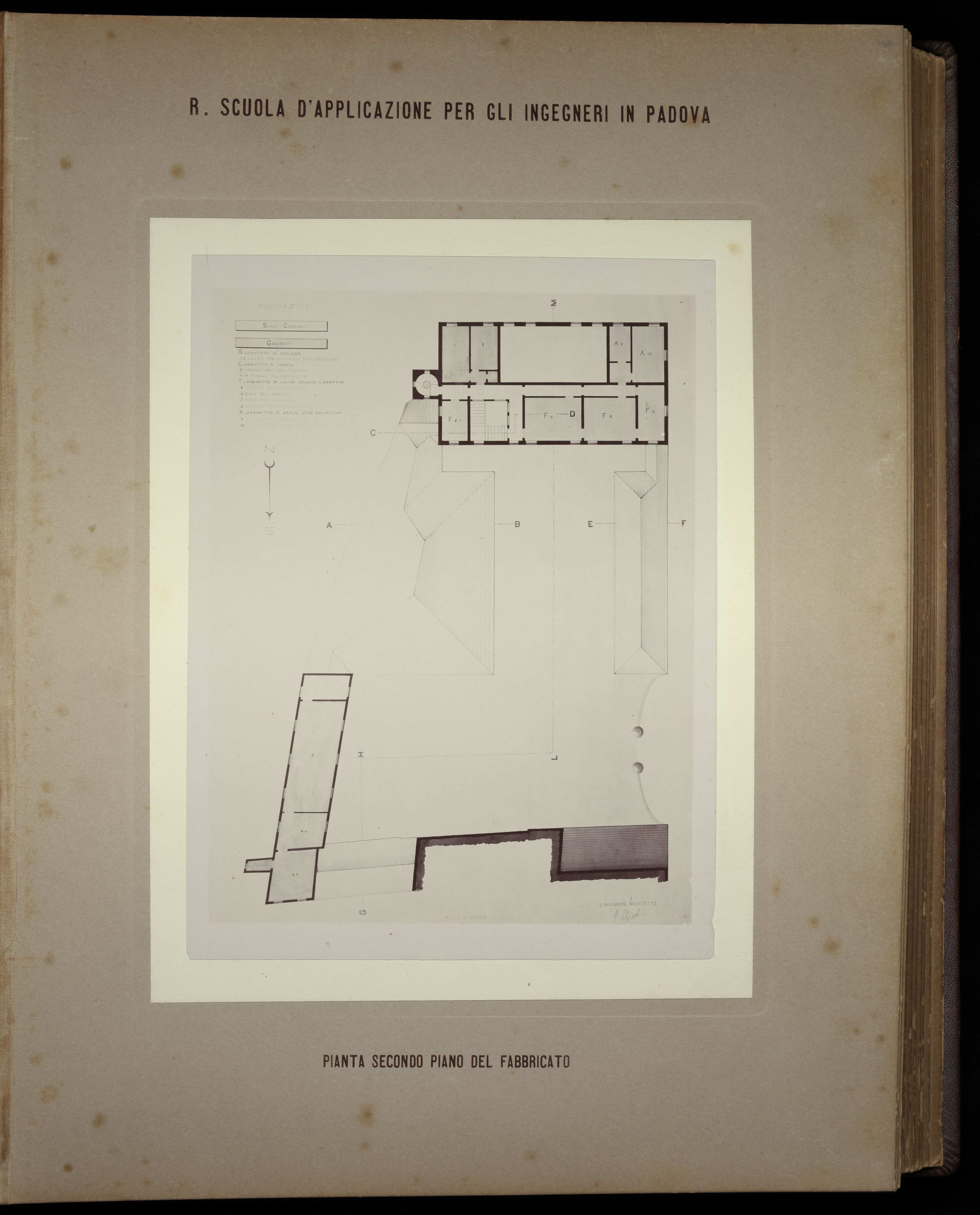 Stampa fotografica della pianta secondo piano del fabbricato della Regia Scuola d'Applicazione per gli Ingegneri di Padova.